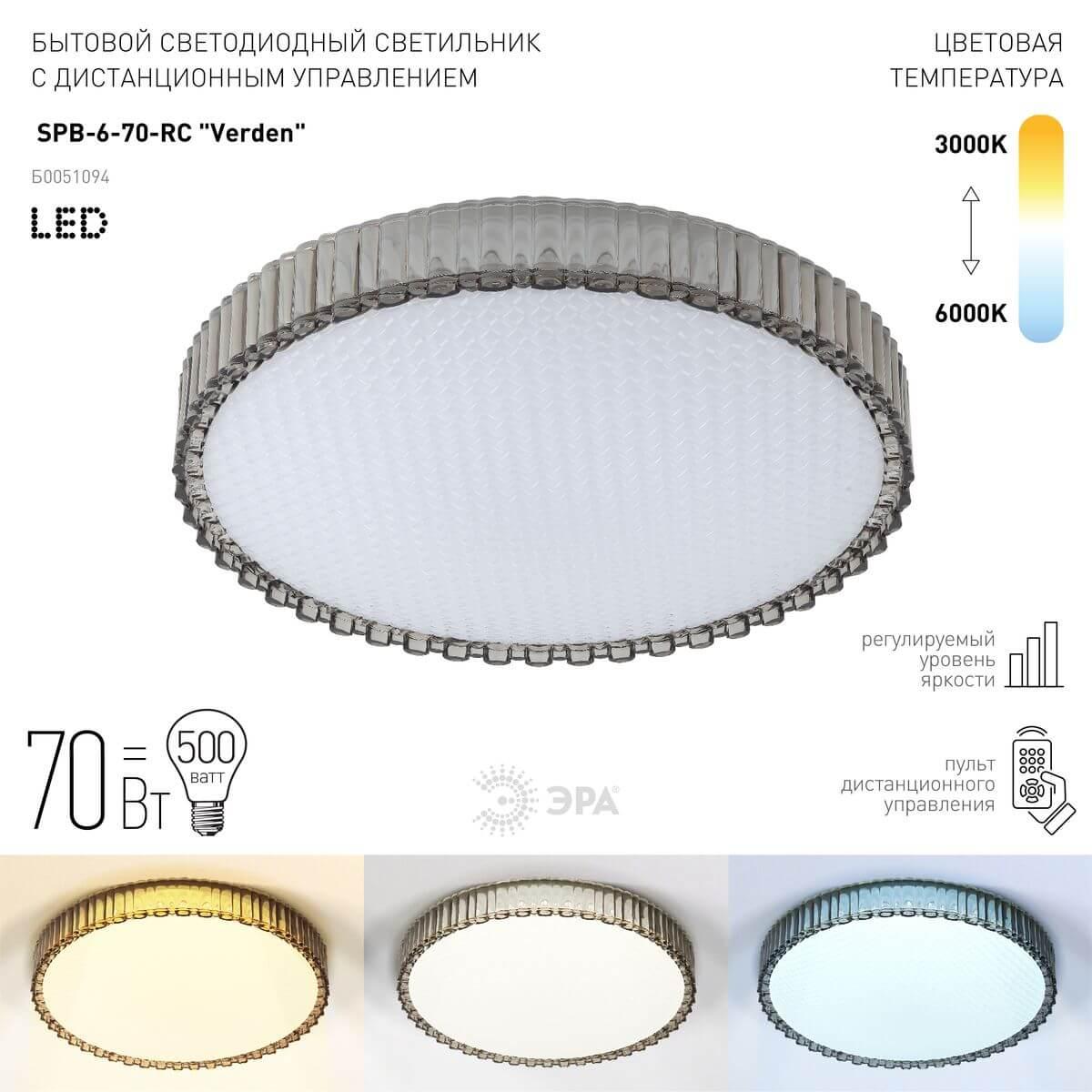 Потолочный светодиодный светильник ЭРА Классик с ДУ SPB-6-70-RC Verden Б0051094