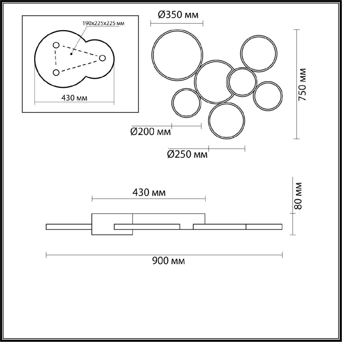 Для светильника необходима 7 светодиодных ламп 126 W. Габариты изделия: высота – 80 мм, диаметр – мм.