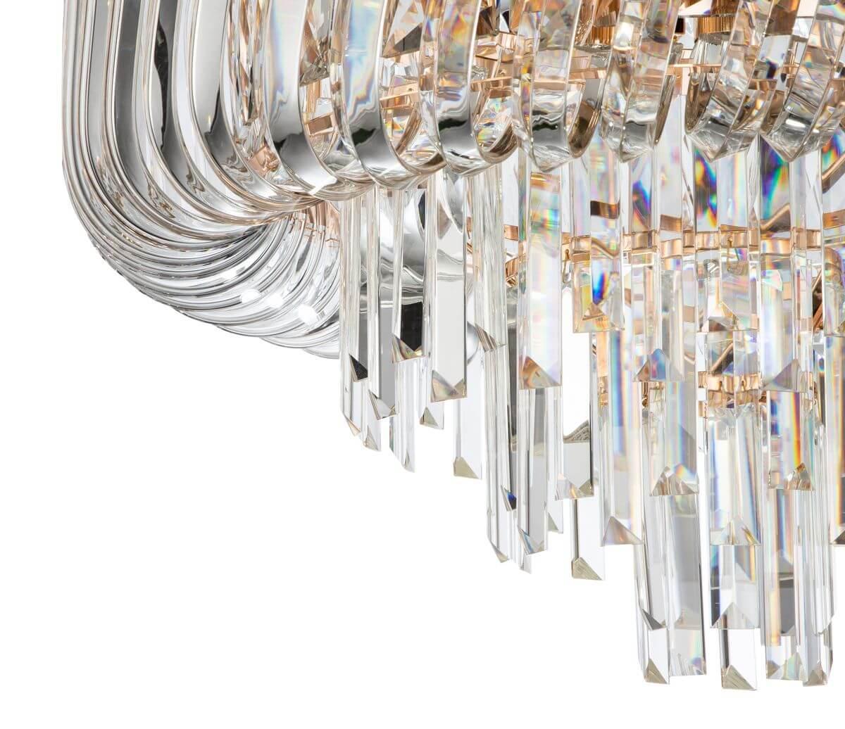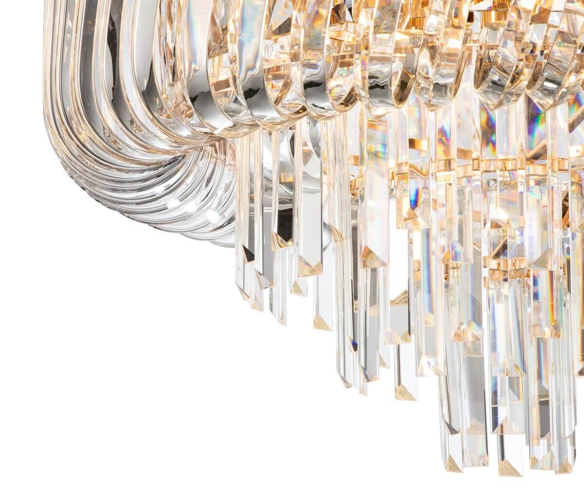 Потолочный светильник Indigo Braccia 12007/8С Gold V000042 от Китайского бренда из коллекции Braccia предназначен для установки на потолок в гостиной в стиле модерн. Cветильник в форме с металлической арматурой залотого цвета и прозрачного цвета плафонами из хрусталя предназначен для освещения м2.