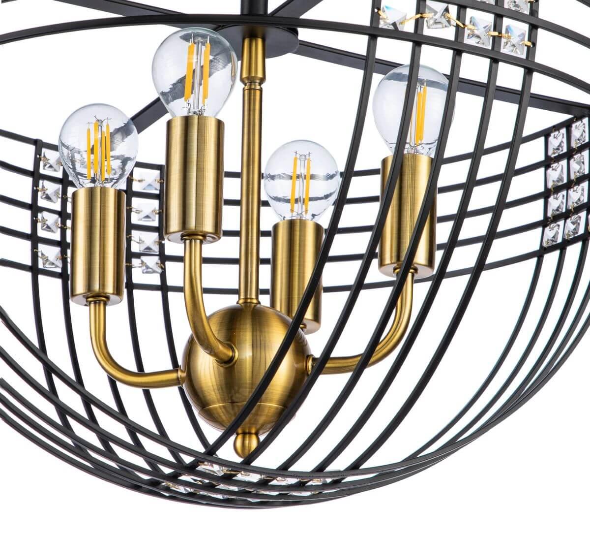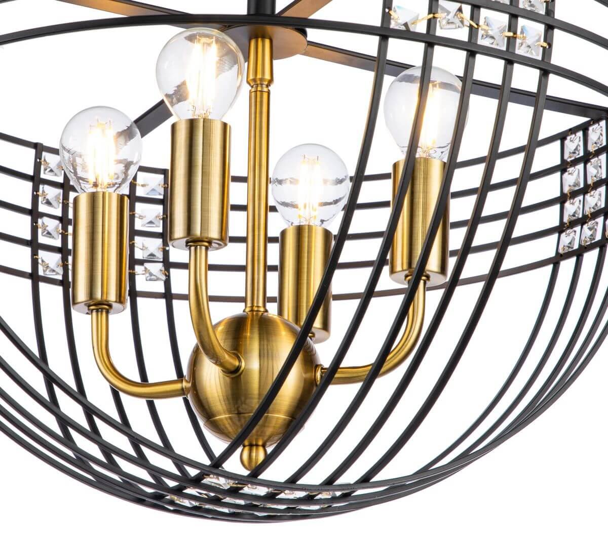 Для светильника необходима 4 лампы накаливания 40 W. Габариты изделия: высота – 420 мм, диаметр – 450 мм.