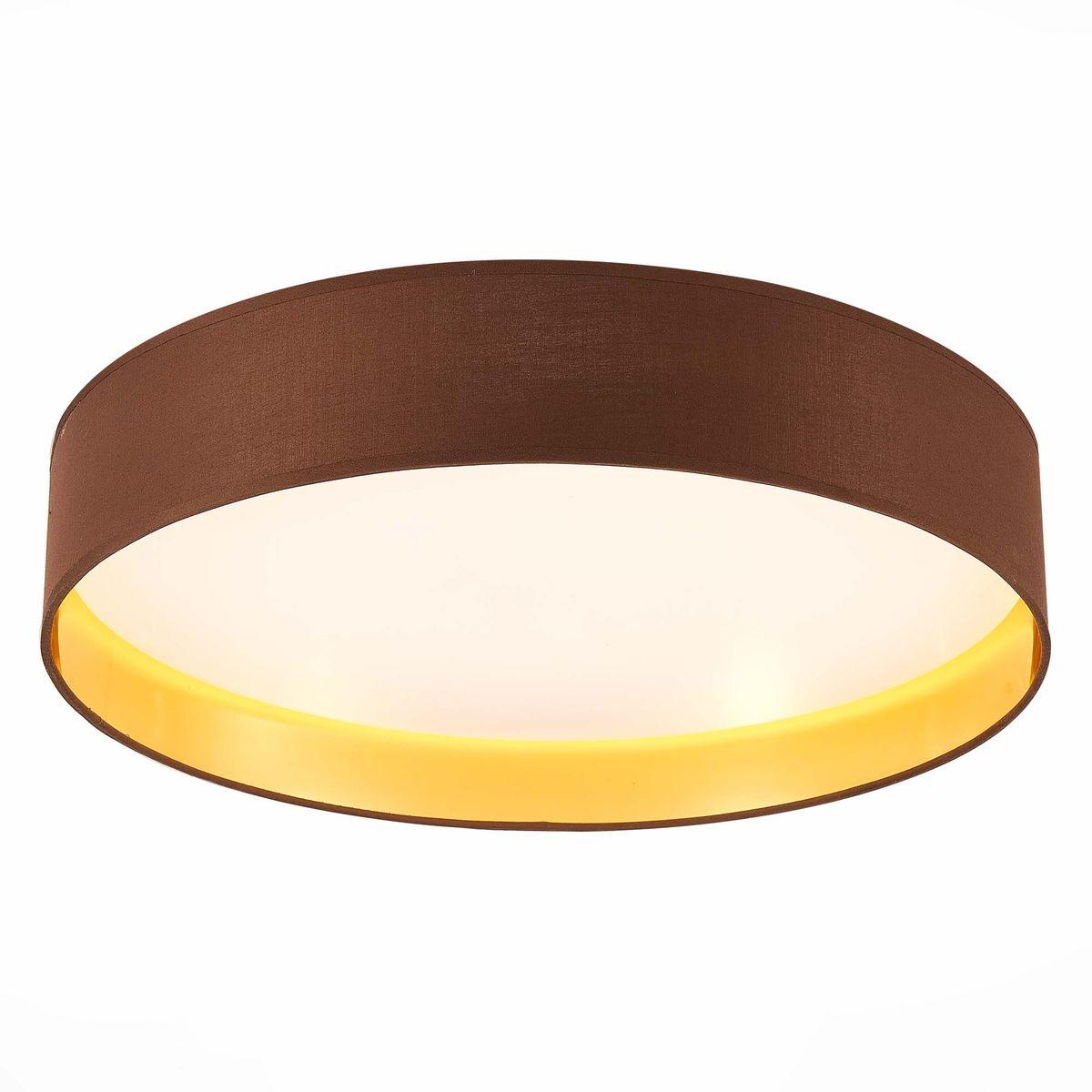 Потолочный светодиодный светильник Evoluce Brescia SLE300592-01 от Китайского бренда из коллекции Brescia предназначен для установки на потолок в гостиной в современном стиле. Cветильник в форме с металлической арматурой цвета никель и кофейного цвета плафонами из ткани предназначен для освещения 17 м2.