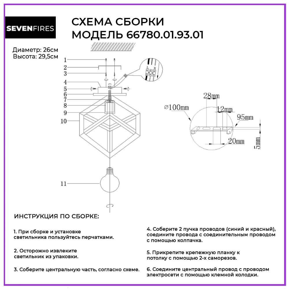Для светильника необходима 1 лампа накаливания 60 W. Габариты изделия: высота – 295 мм, диаметр – 260 мм.