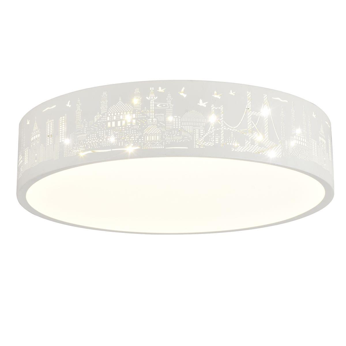 Потолочный светодиодный светильник Hiper City H842-0 от Китайского бренда из коллекции City предназначен для установки на потолок в детской в современном стиле. Cветильник в форме с металлической арматурой белого цвета и белого цвета плафонами из пластика предназначен для освещения 11 м2.