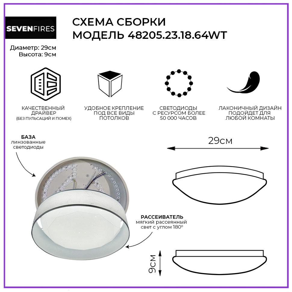 Потолочный светодиодный светильник Seven Fires Лагом 48205.23.18.64WT от бренда из коллекции Лагом предназначен для установки на потолок в спальни в современном стиле. Cветильник в форме с металлической арматурой белого цвета и белого цвета плафонами из ткани предназначен для освещения 7 м2.