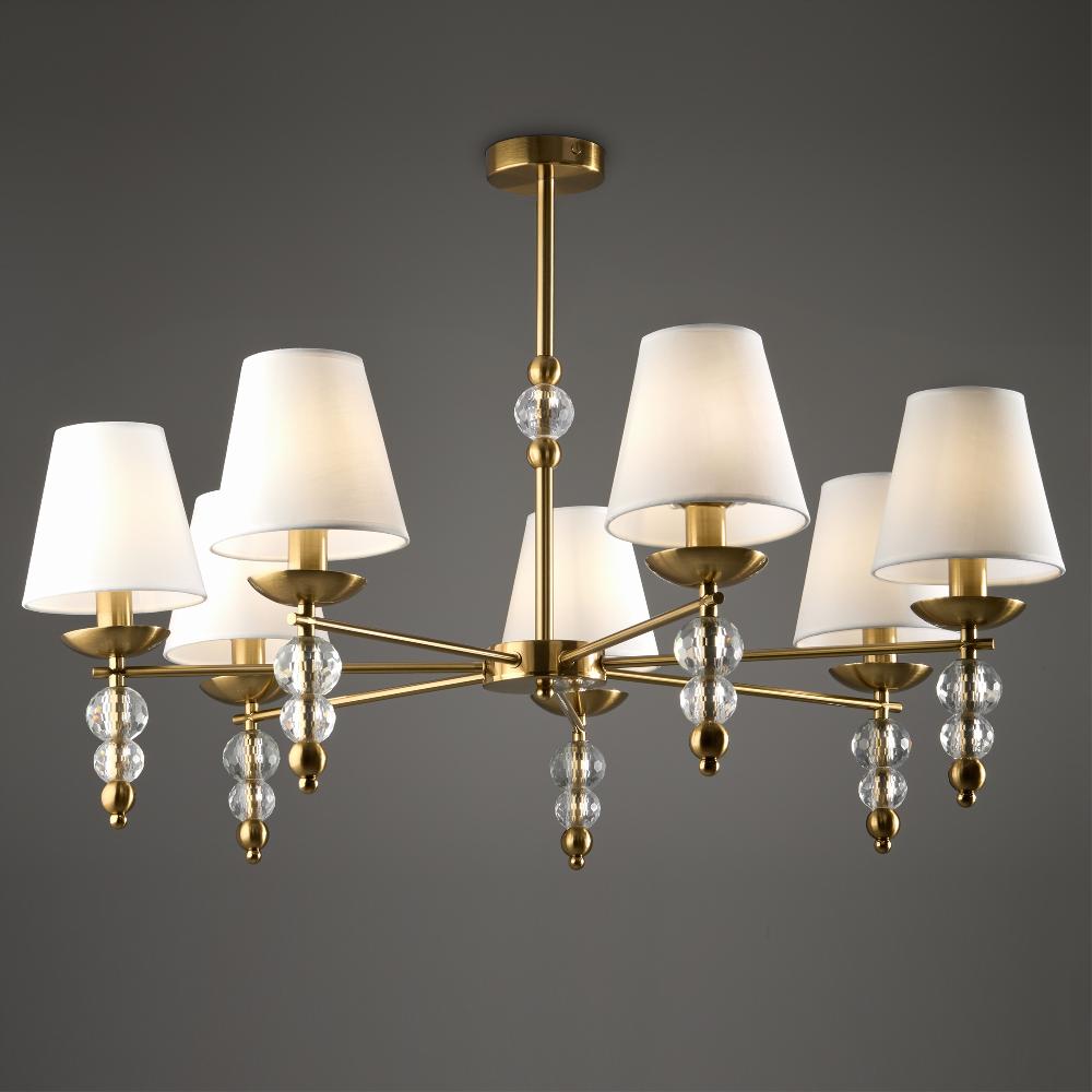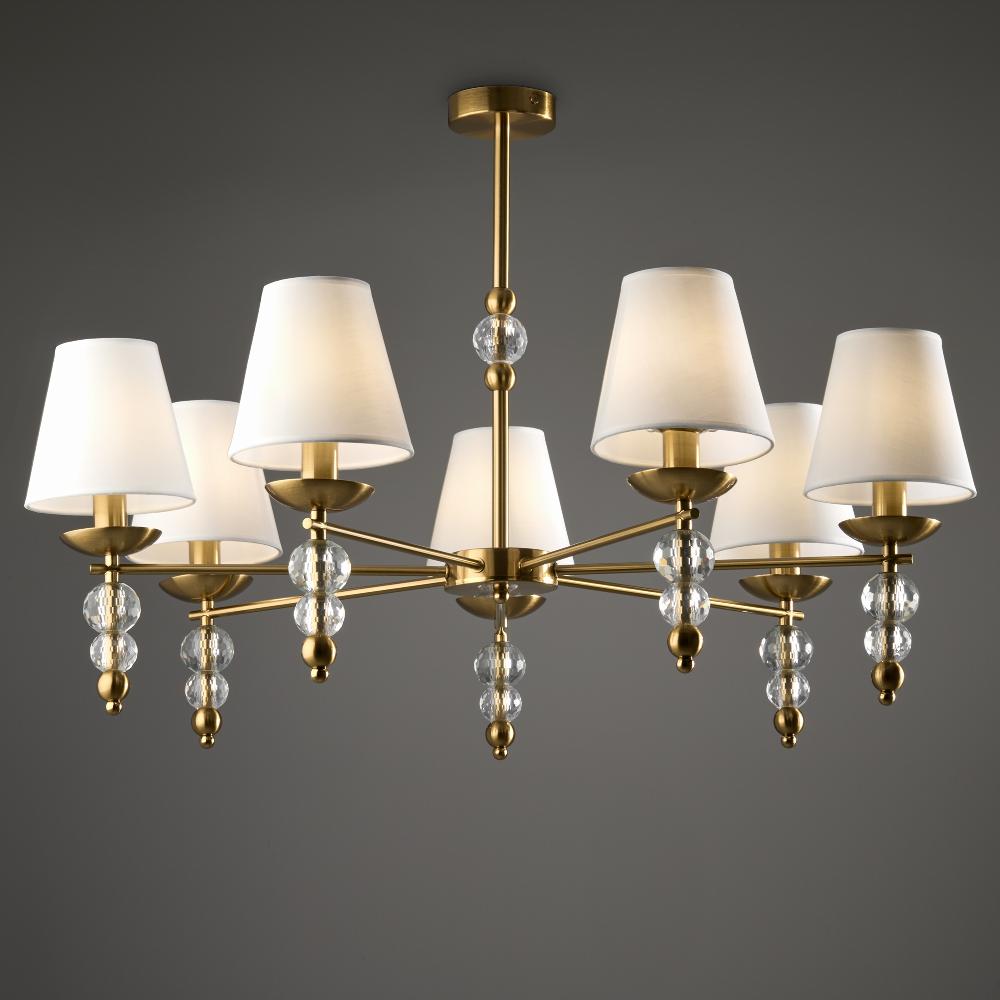 Потолочный светильник Freya FR1009CL-07BS от бренда из коллекции Crystal предназначен для установки в . Cветильник в форме с арматурой и белого цвета плафонами из ткани предназначен для освещения м2.