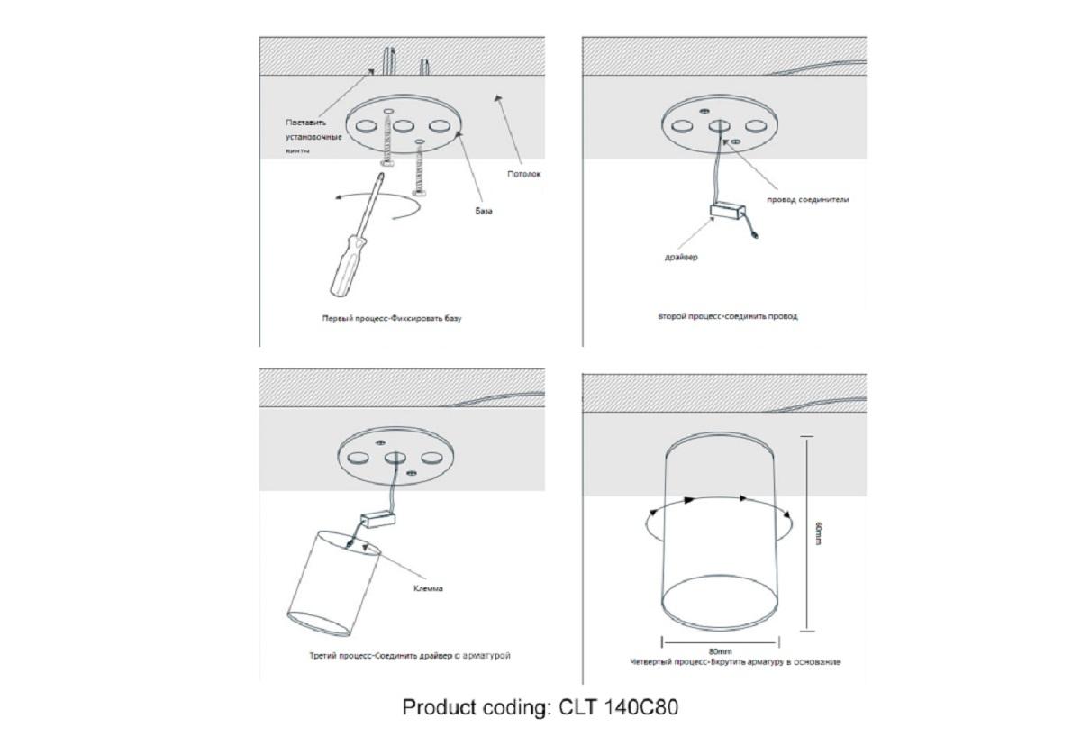 Для светильника необходима светодиодных ламп 12 W. Габариты изделия: высота – 60 мм, диаметр – 80 мм.