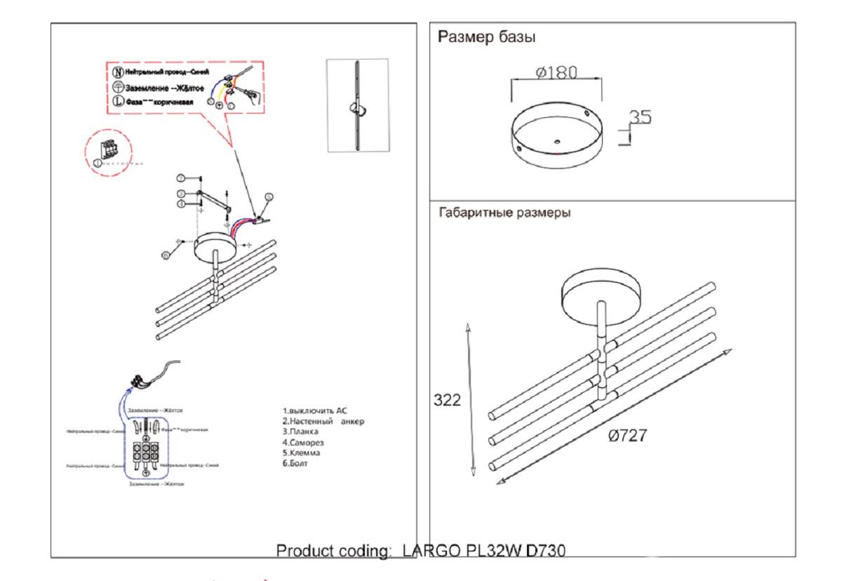 Для светильника необходима светодиодных ламп 32 W. Габариты изделия: высота – 322 мм, диаметр – 727 мм.