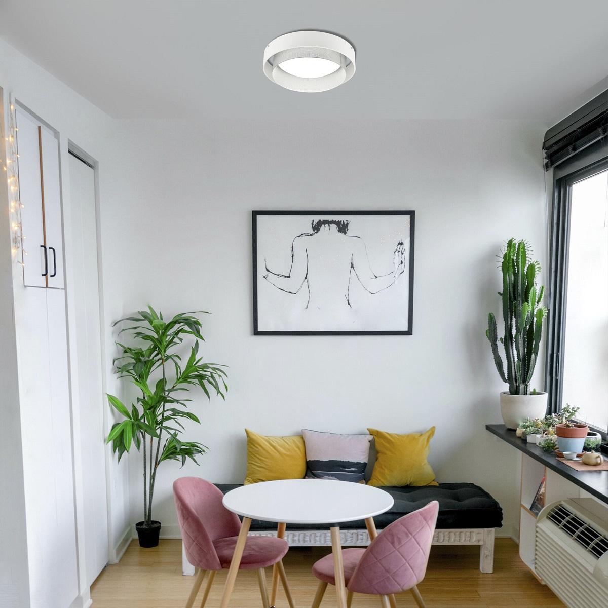Потолочный светодиодный светильник Eurosvet Imperio 90286/1 белый/серебро Smart от бренда из коллекции Imperio предназначен для установки на потолок в прихожей в хай-тек стиле. Cветильник в форме с металлической арматурой белого цвета и серебрянного цвета плафонами из металла предназначен для освещения 6 м2.