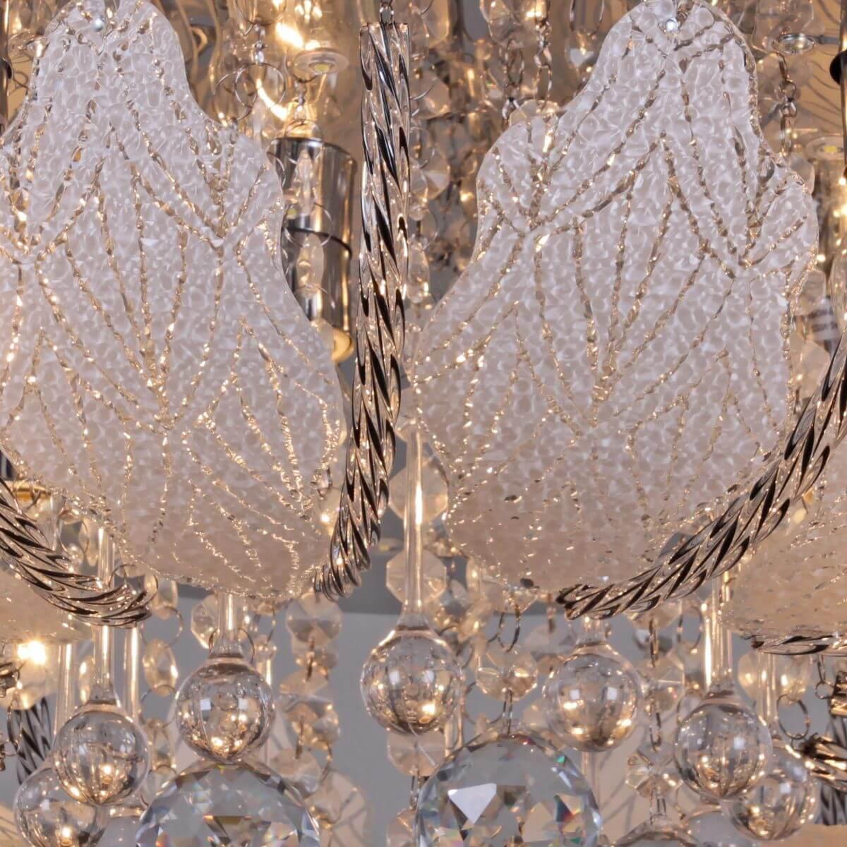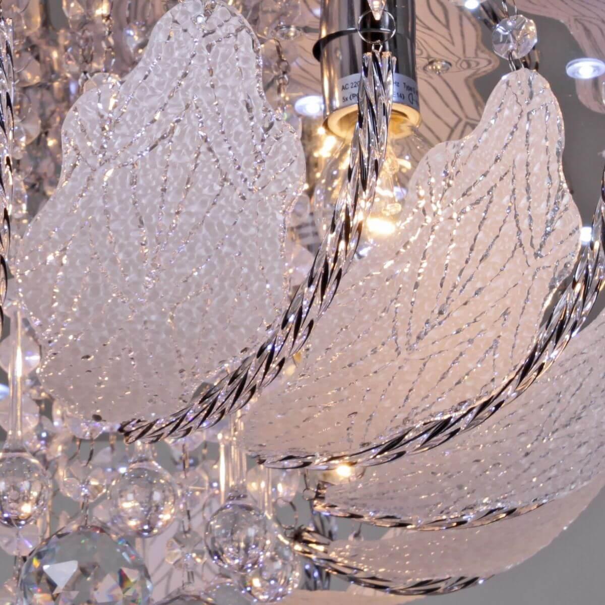 Для светильника необходима 5 ламп накаливания 40 W. Габариты изделия: высота – 260 мм, диаметр – 500 мм.