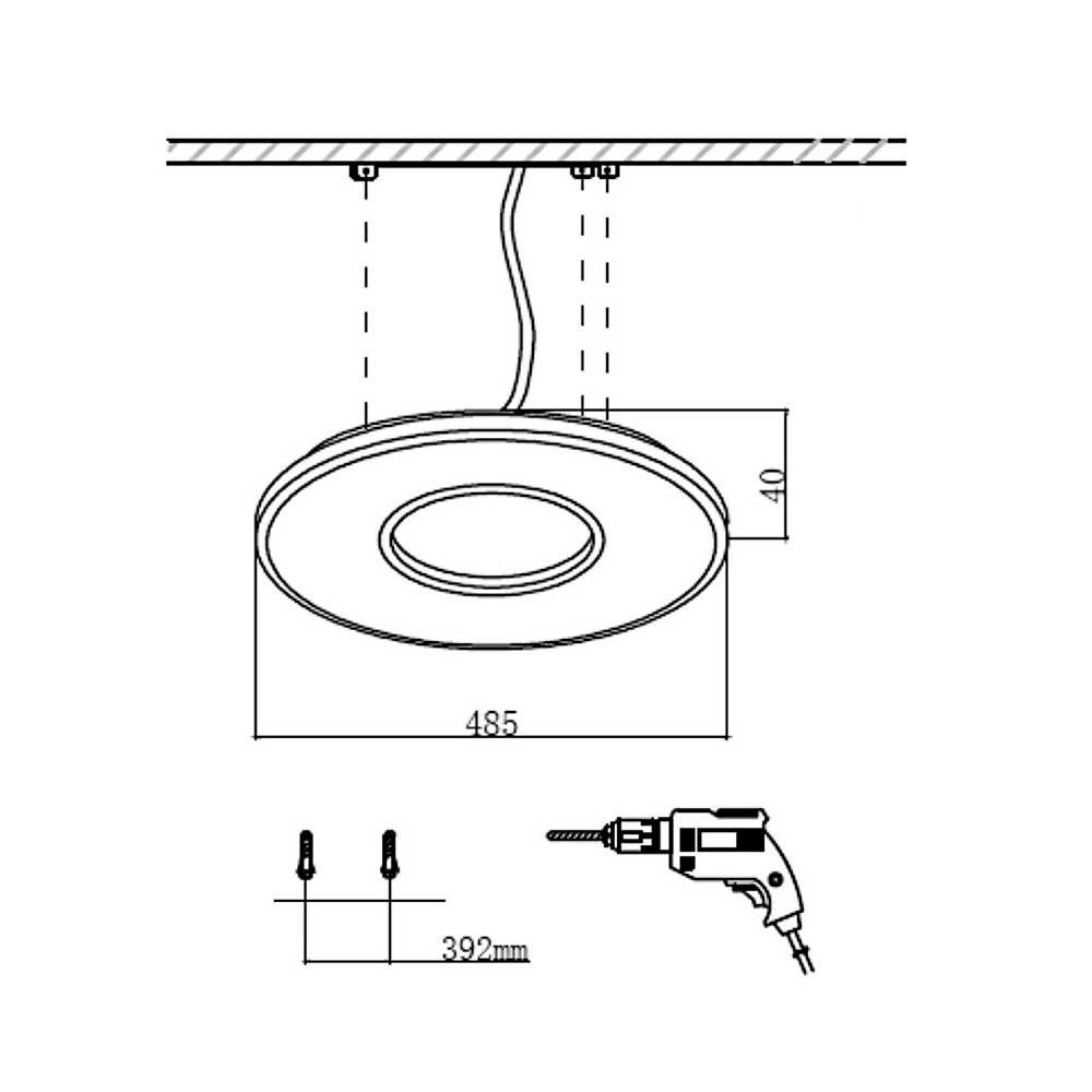 Для светильника необходима 1 светодиодная лампа 42 W. Габариты изделия: высота – 40 мм, диаметр – 485 мм.