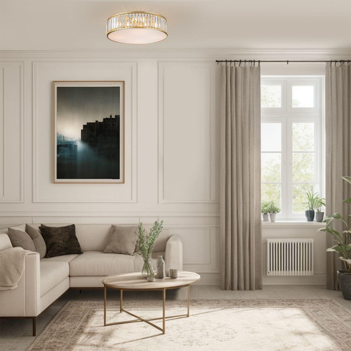 Потолочный светильник Escada Unona 2116/4 от Китайского бренда из коллекции Unona предназначен для установки на потолок в спальни в стиле модерн. Cветильник в форме с металлической арматурой залотого цвета и плафонами из предназначен для освещения 10 м2.