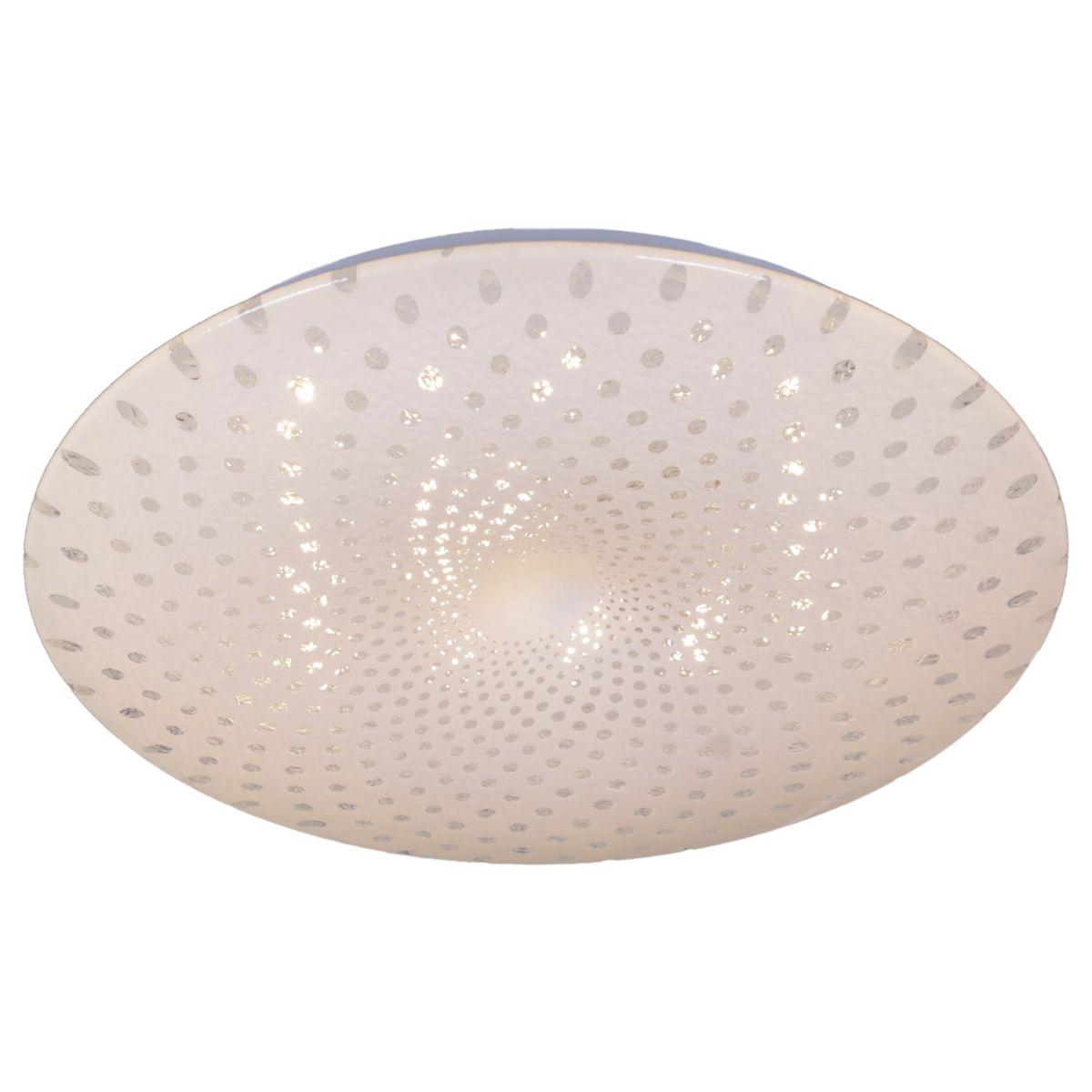 Для светильника необходима светодиодных ламп 54 W. Габариты изделия: высота – 50 мм, диаметр – 415 мм.