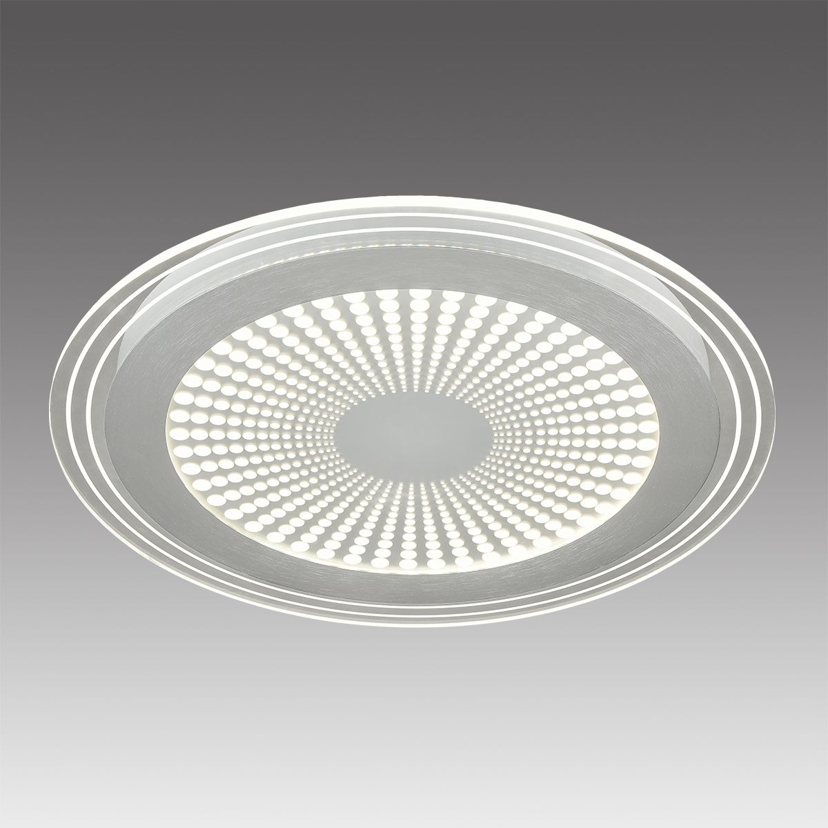 Для светильника необходима 1 светодиодная лампа 80 W. Габариты изделия: высота – 45 мм, диаметр – 480 мм.