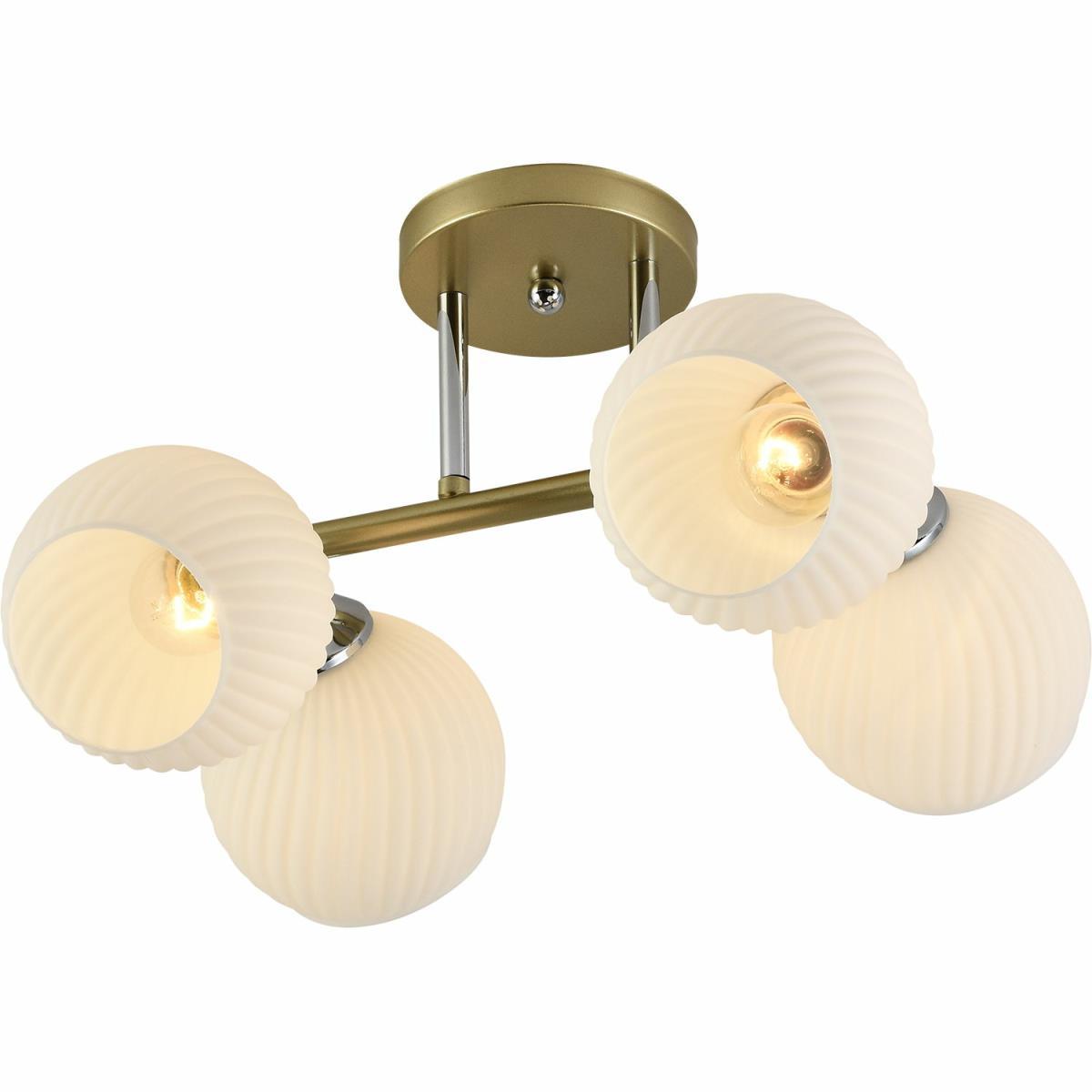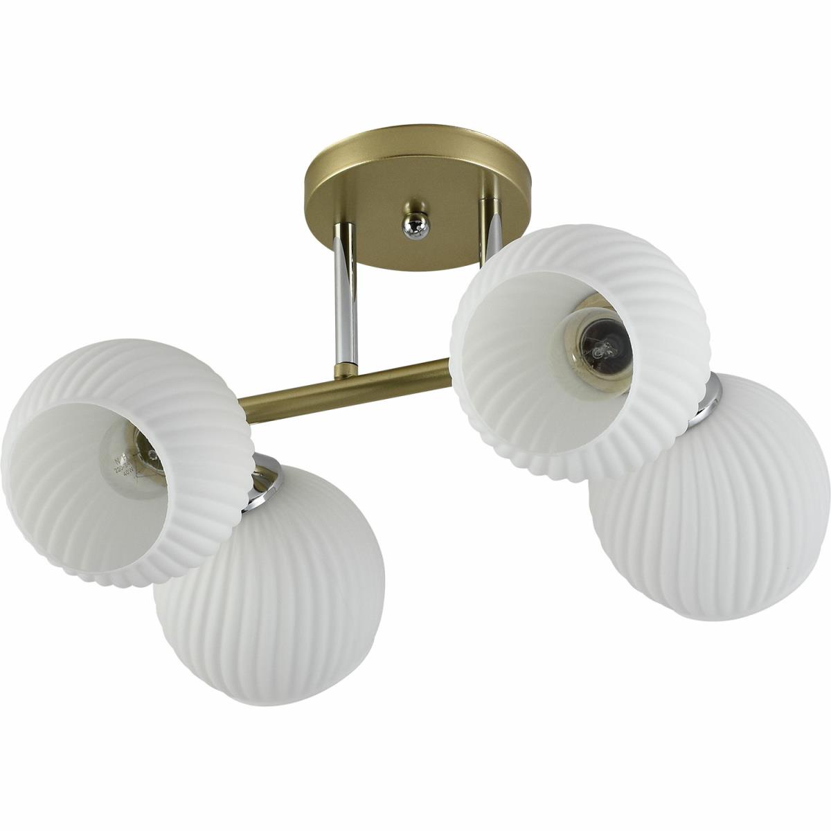 Потолочный светильник Reluce 01375-0.3-04 GOLD+CR от бренда из коллекции предназначен для установки в . Cветильник в форме с металлической арматурой и белого цвета плафонами из стекла предназначен для освещения м2.