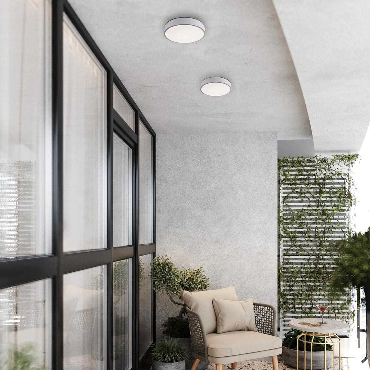 Для светильника необходима 24 W. Габариты изделия: высота – 55 мм, диаметр – 300 мм.