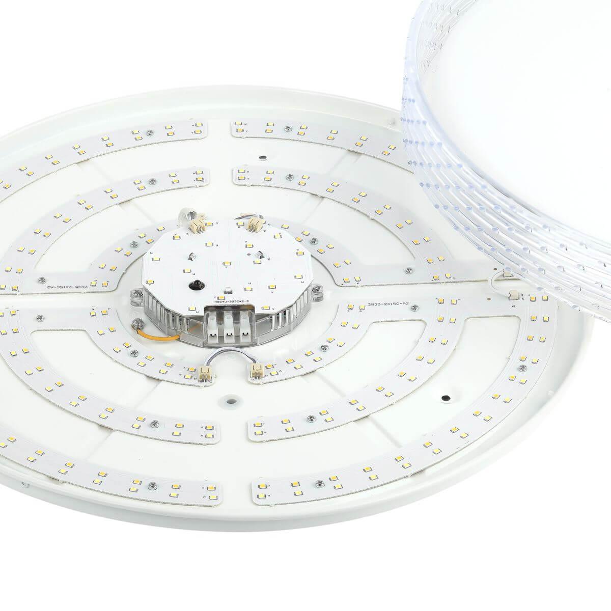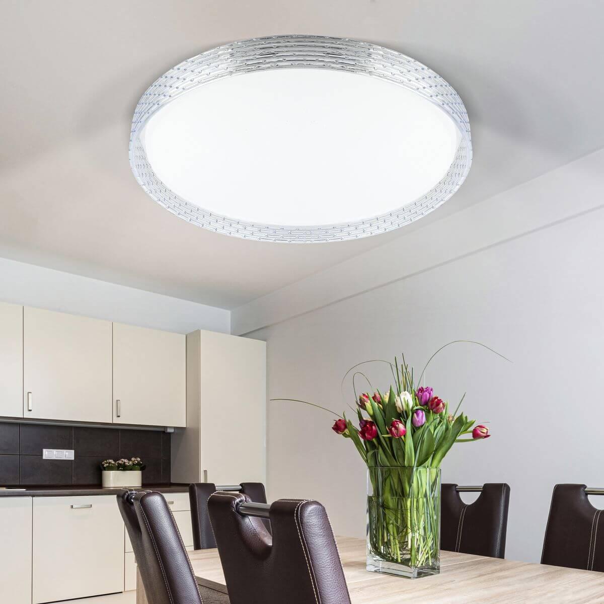 Для светильника необходима 1 светодиодная лампа 70 W. Габариты изделия: высота – 77 мм, диаметр – 510 мм.