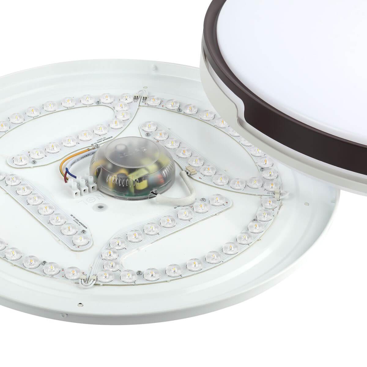 Для светильника необходима 1 светодиодная лампа 70 W. Габариты изделия: высота – 80 мм, диаметр – 500 мм.
