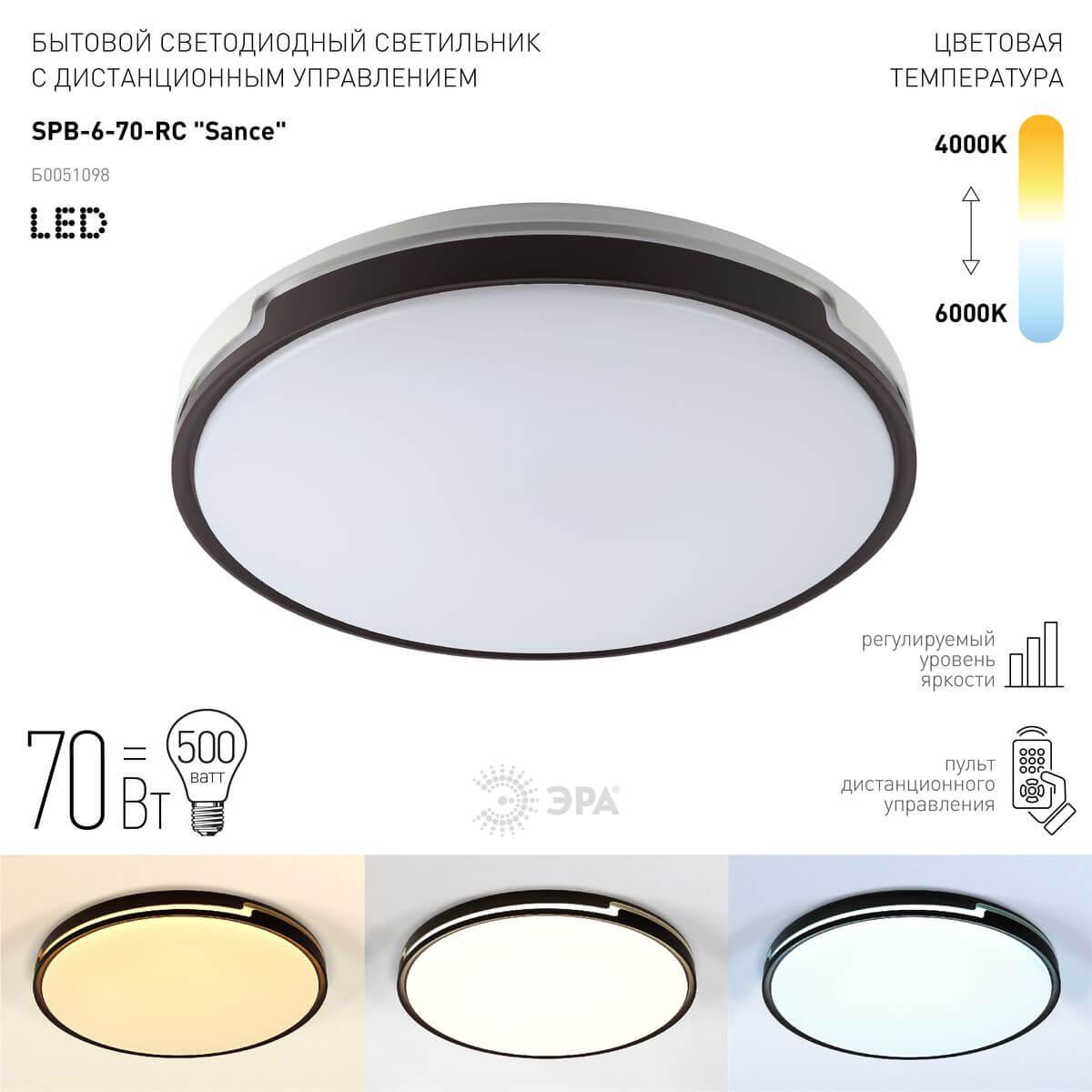 Потолочный светодиодный светильник ЭРА Классик с ДУ SPB-6-70-RC Sance Б0051098
