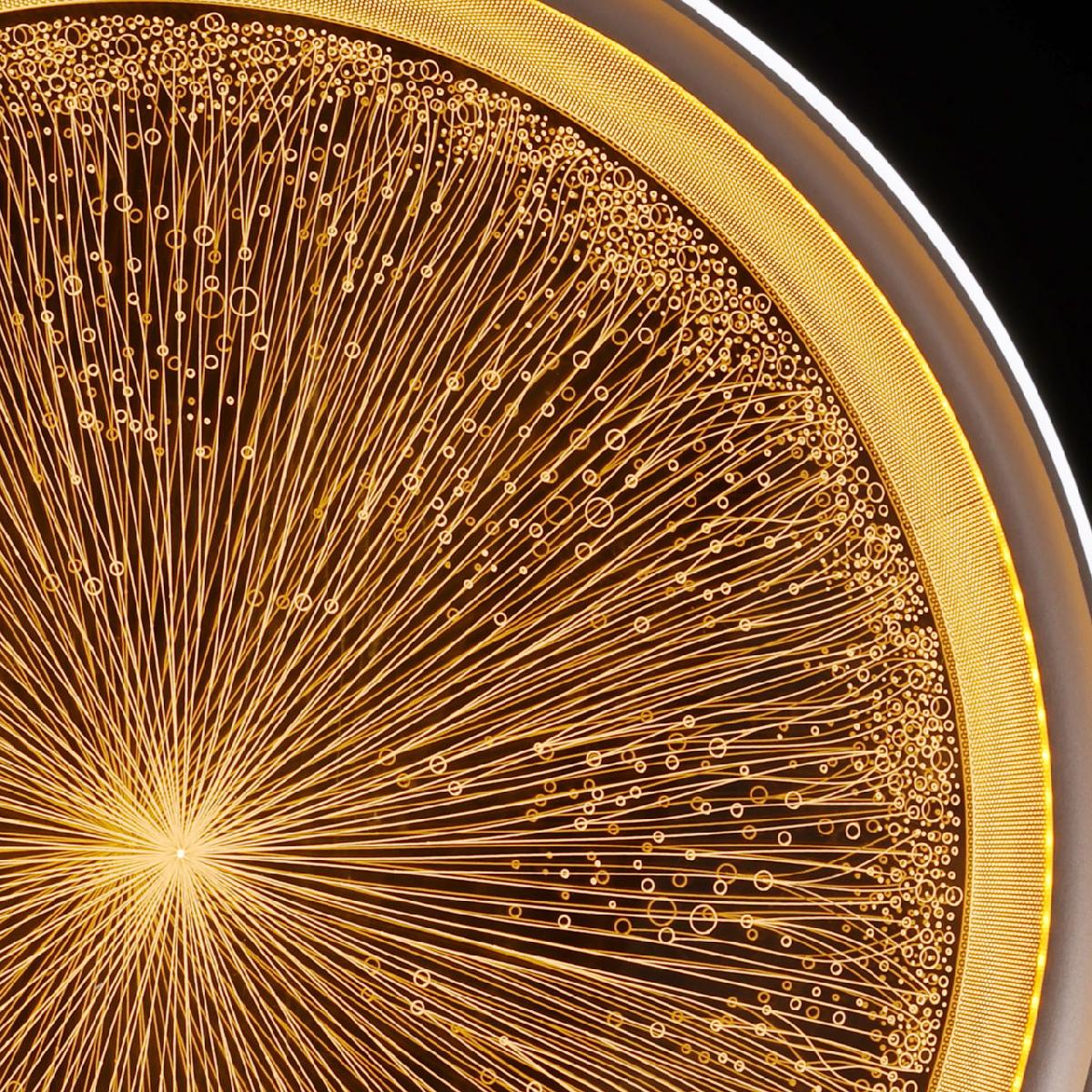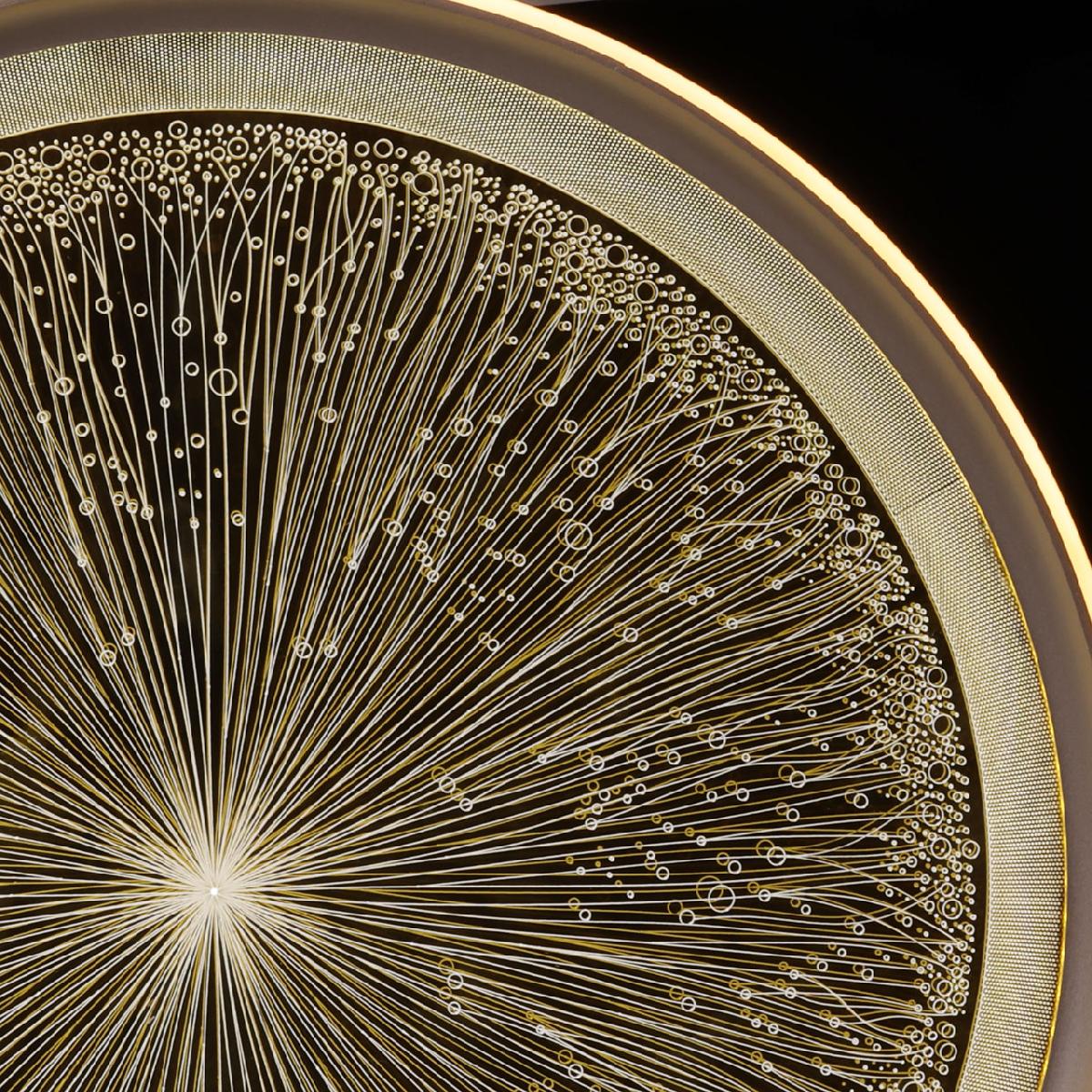 Для светильника необходима 1 светодиодная лампа 62 W. Габариты изделия: высота – 80 мм, диаметр – 320 мм.