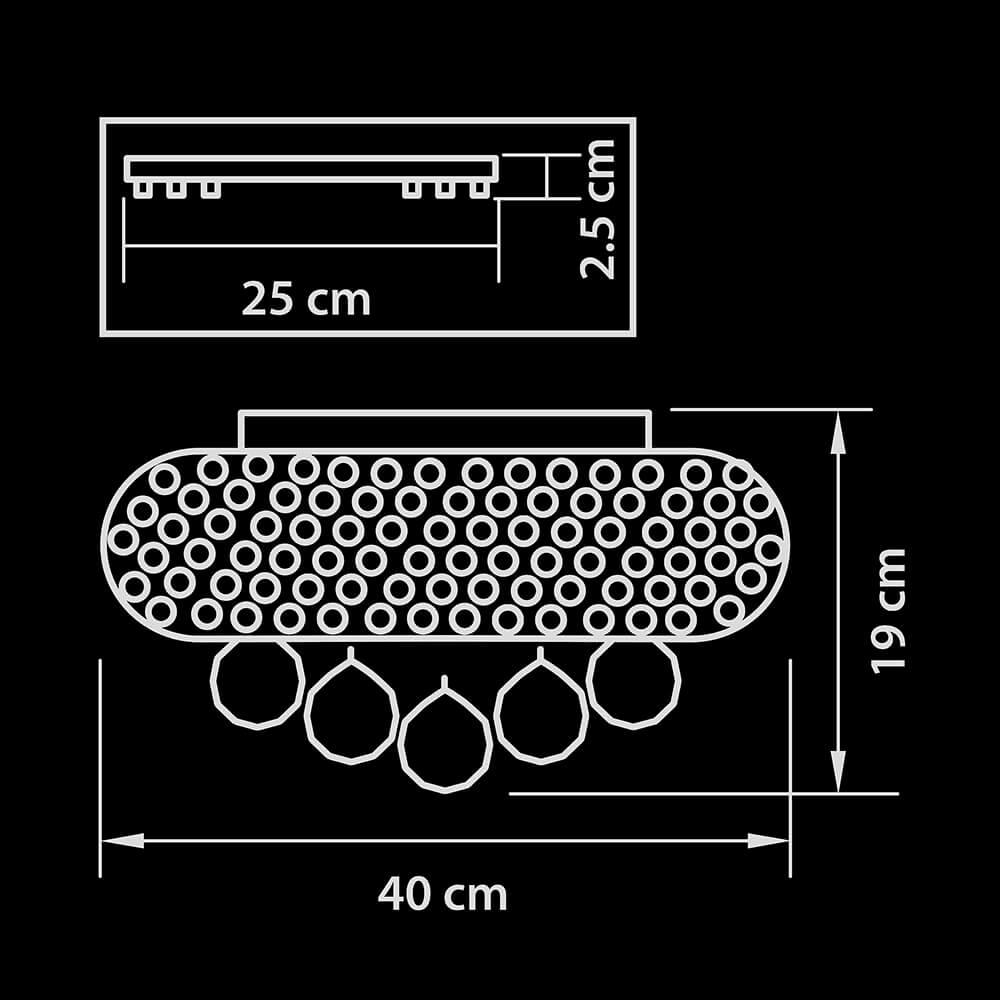 Для светильника необходима 6 светодиодных ламп 40 W. Габариты изделия: высота – 190 мм, диаметр – 400 мм.