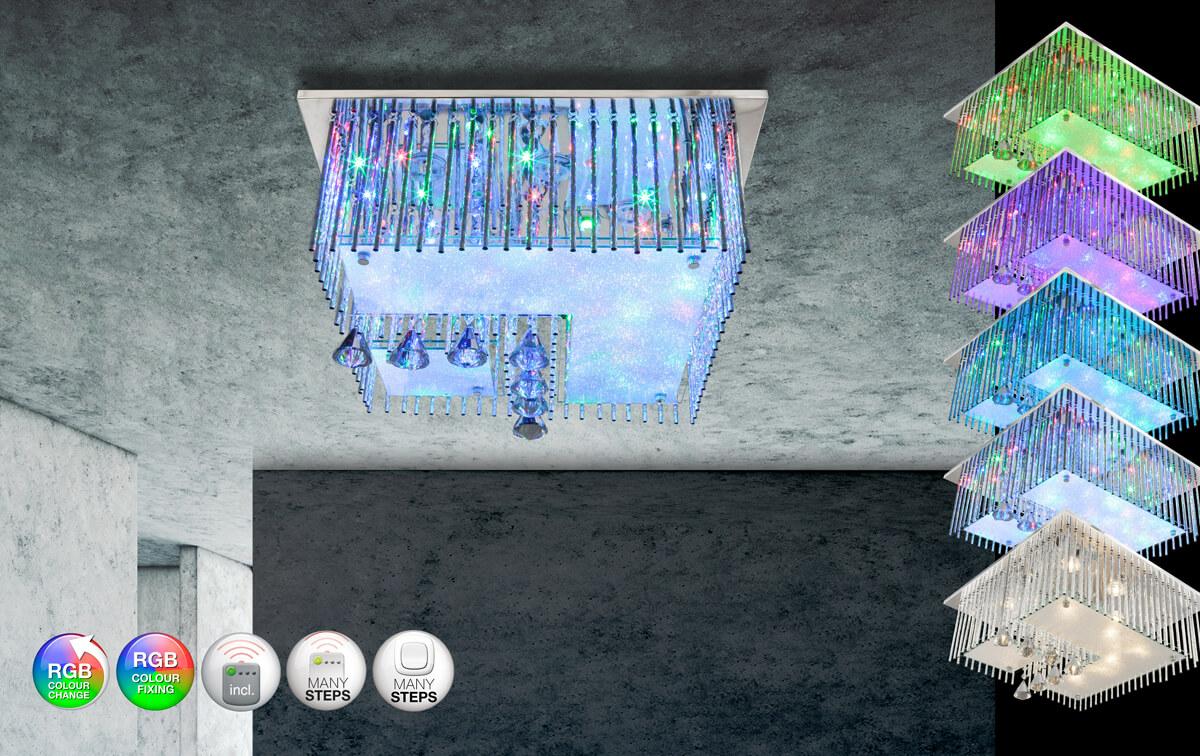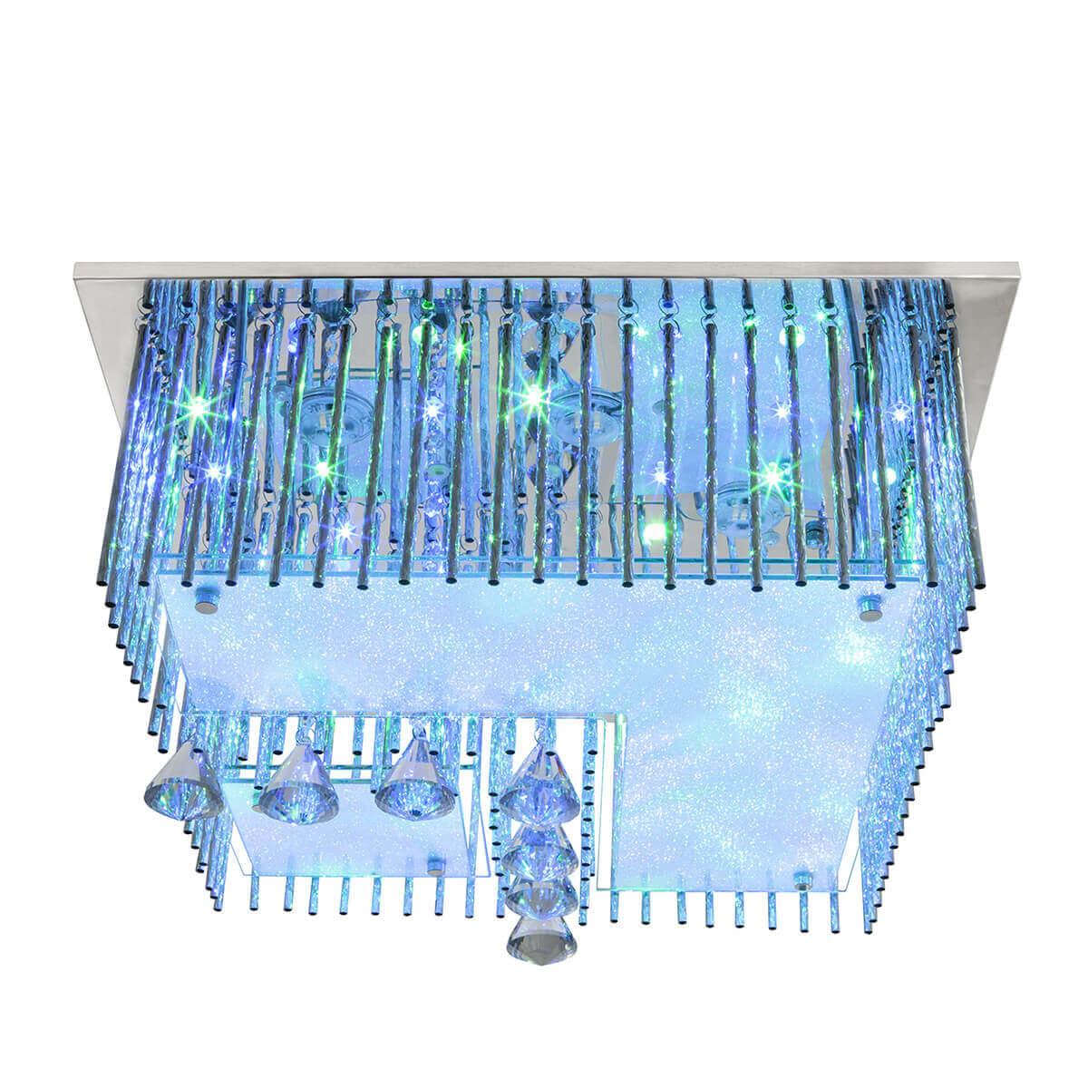 Потолочный светодиодный светильник Globo Fragilis 68563-5RGB от Китайского бренда Globo из коллекции Fragilis предназначен для установки на потолок в гостиной в стиле Арт-деко. Cветильник в форме прямоугольника с металлической арматурой цвет хрома и белого цвета плафонами из стекла предназначен для освещения м2.