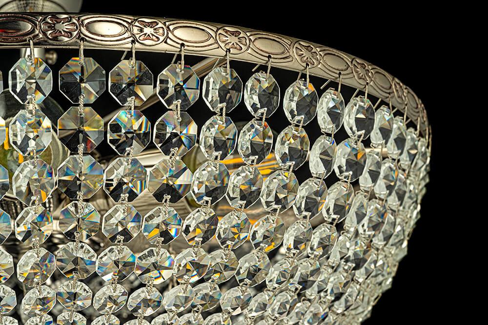 Для светильника необходима 5 ламп накаливания 60 W. Габариты изделия: высота – 250 мм, диаметр – 400 мм.