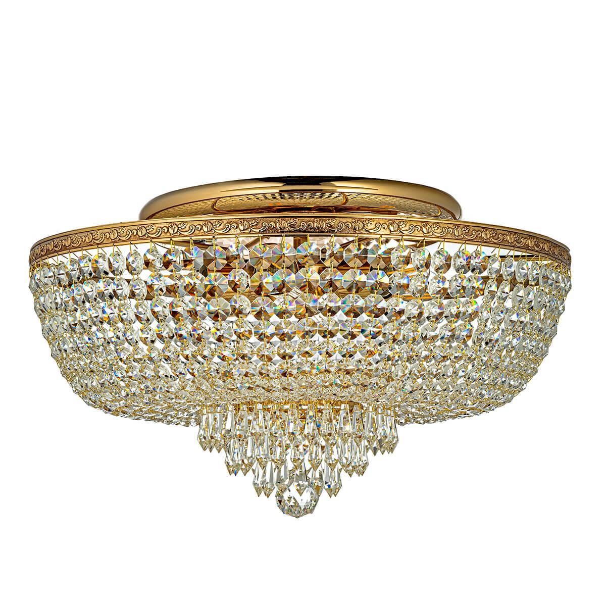 Потолочный светильник Arti Lampadari Nonna LE 1.2.50.503 G от Итальянского бренда Arti Lampadari из коллекции Nonna Gold предназначен для установки на потолок в гостиной в классиком стиле. Cветильник в форме с металлической арматурой залотого цвета и плафонами из предназначен для освещения 20 м2.