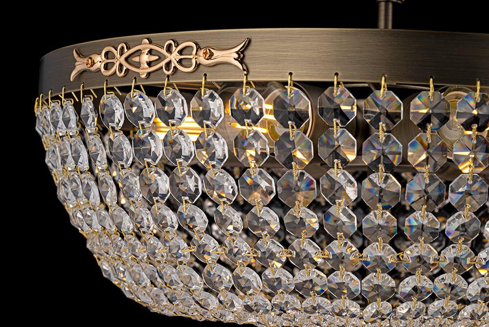 Для светильника необходима 6 ламп накаливания 60 W. Габариты изделия: высота – 320 мм, диаметр – 400 мм.