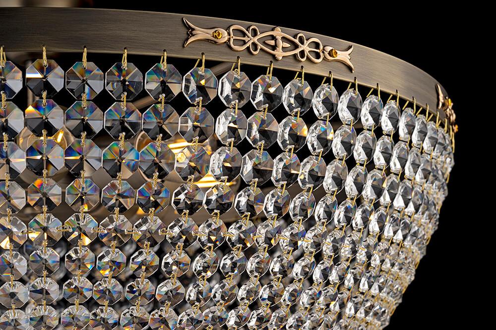 Для светильника необходима 8 ламп накаливания 60 W. Габариты изделия: высота – 350 мм, диаметр – 600 мм.