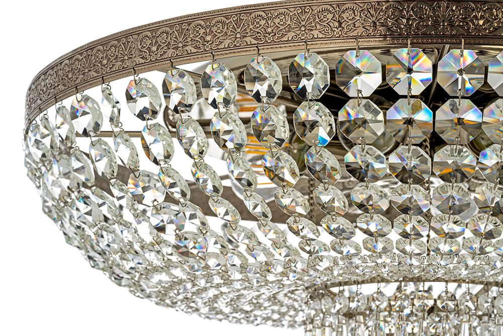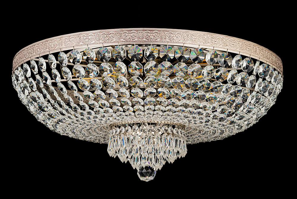 Для светильника необходима 8 ламп накаливания 60 W. Габариты изделия: высота – 350 мм, диаметр – 600 мм.