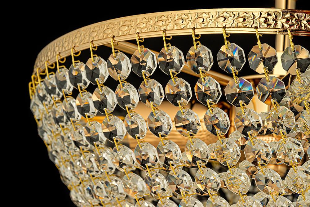 Потолочный светильник Arti Lampadari Stella E 1.3.30.505 G от Итальянского бренда Arti Lampadari из коллекции Stella Gold предназначен для установки на потолок в спальни в классиком стиле. Cветильник в форме с металлической арматурой залотого цвета и плафонами из предназначен для освещения 10 м2.