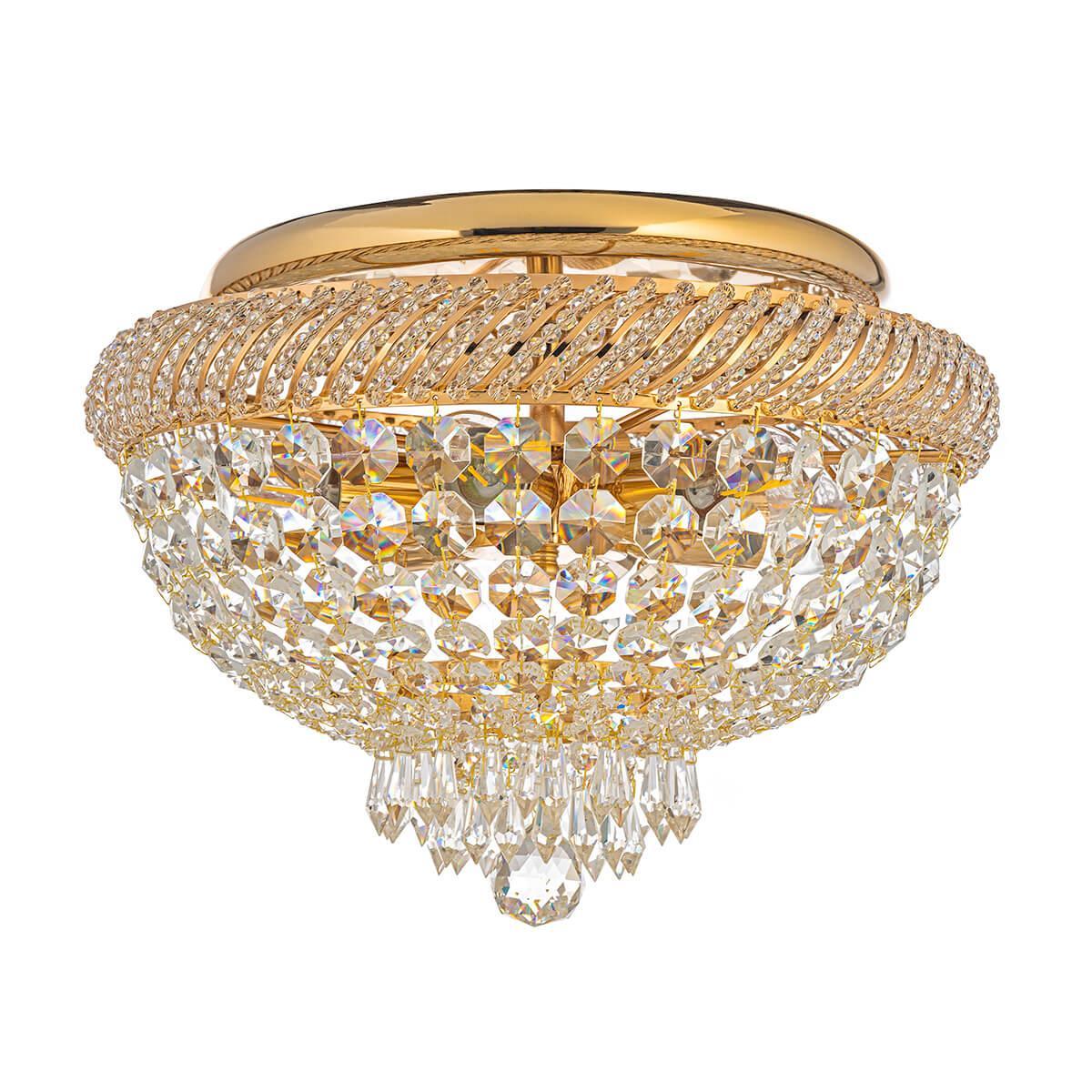 Потолочный светильник Dio DArte Elite Bari E 1.2.35.100 G от Итальянского бренда Dio D`arte из коллекции Bari Gold предназначен для установки на потолок в спальни в классиком стиле. Cветильник в форме декоративного с металлической арматурой и прозрачного цвета плафонами из хрусталя предназначен для освещения 20 м2.