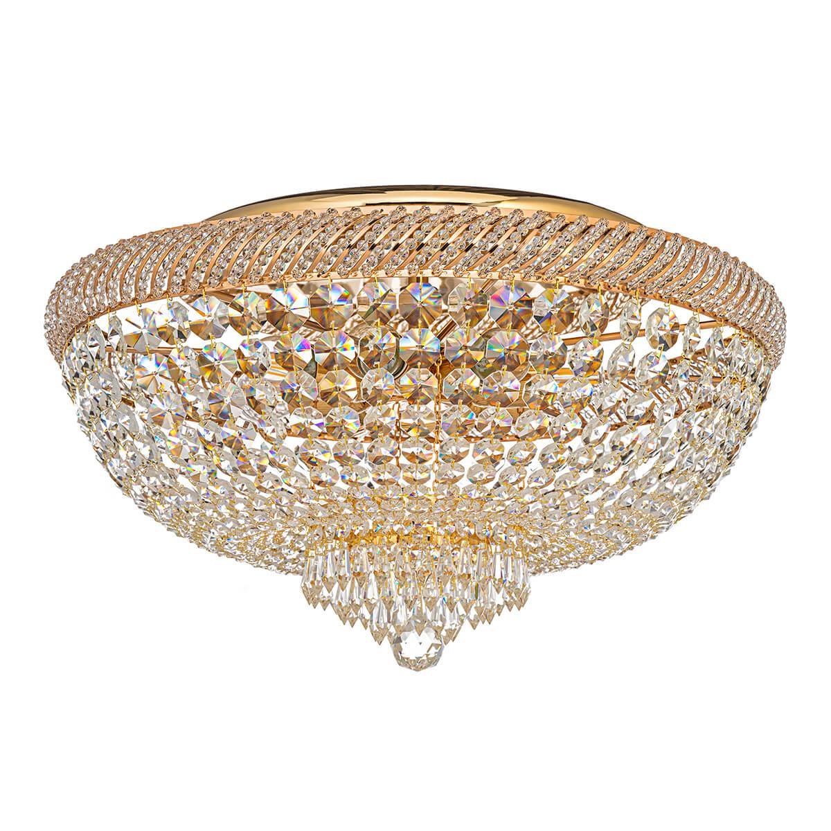 Потолочный светильник Dio DArte Elite Bari E 1.2.60.100 G от Итальянского бренда Dio D`arte из коллекции Bari Gold предназначен для установки на потолок в гостиной в классиком стиле. Cветильник в форме декоративного с металлической арматурой и прозрачного цвета плафонами из хрусталя предназначен для освещения 26,7 м2.