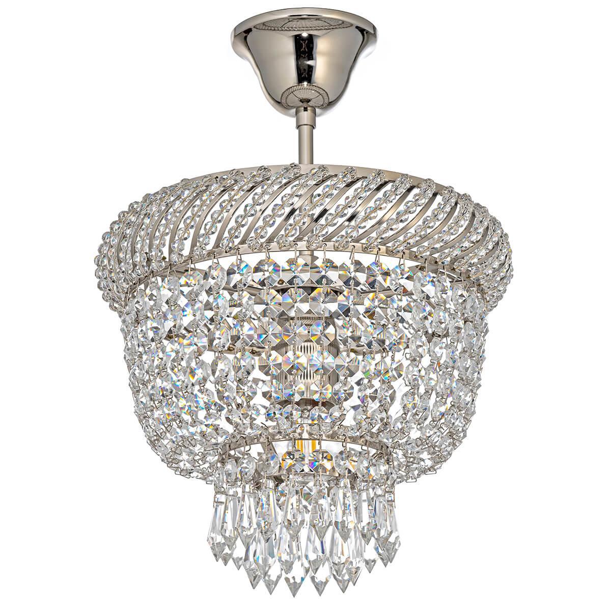 Потолочный светильник Dio DArte Elite Bari E 1.3.25.199 N от Итальянского бренда Dio D`arte из коллекции Bari Nickel предназначен для установки на потолок в прихожей в классиком стиле. Cветильник в форме декоративного с металлической арматурой цвета никель и прозрачного цвета плафонами из хрусталя предназначен для освещения 3,3 м2.