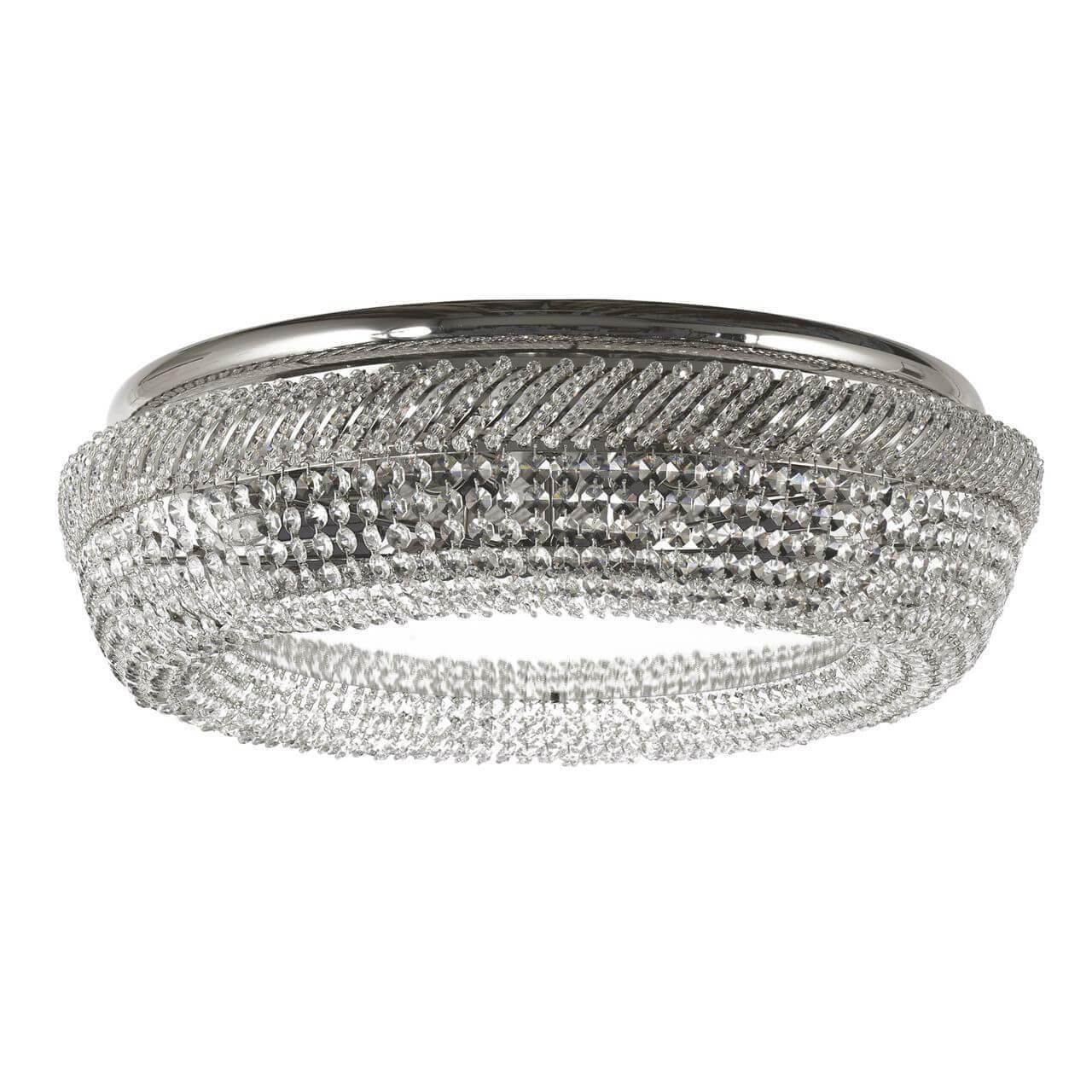 Потолочный светильник Dio DArte Asfour Bari E 1.4.60.200 N от Итальянского бренда Dio D`arte из коллекции Bari Nickel предназначен для установки на потолок в гостиной в классиком стиле. Cветильник в форме конуса с металлической арматурой цвета никель и прозрачного цвета плафонами из хрусталя предназначен для освещения 26 м2.