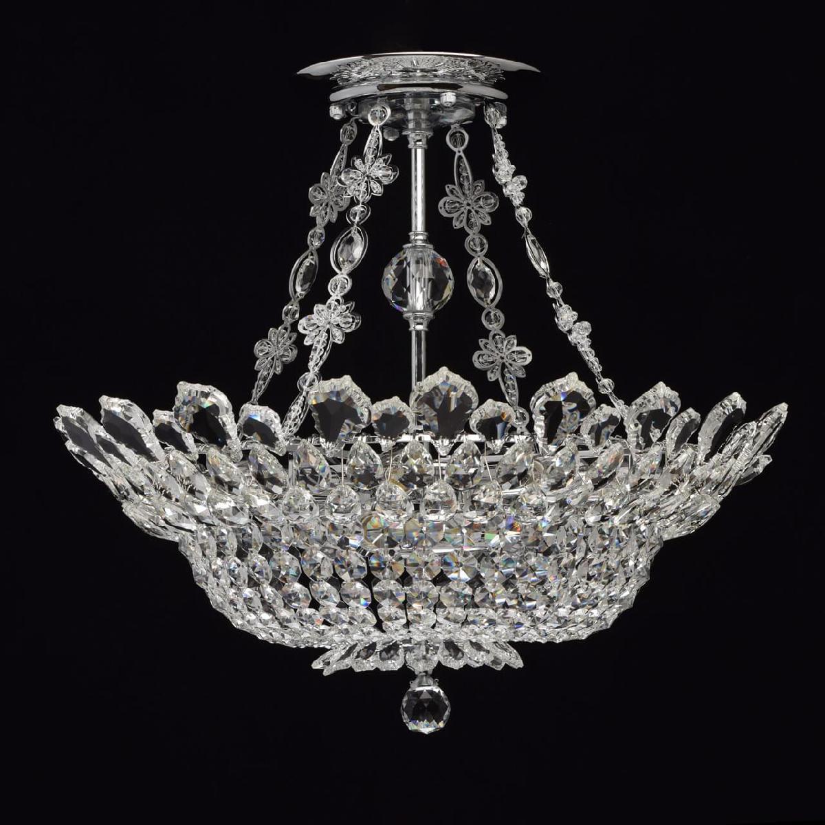 Потолочный светильник MW-Light Патриция 1 447010912 от Немецкого бренда MW-Light из коллекции Патриция предназначен для установки на потолок в гостиной в классиком стиле. Cветильник в форме Флористика с металлической арматурой цвет хрома и прозрачного цвета плафонами из хрусталя предназначен для освещения 26,7 м2.