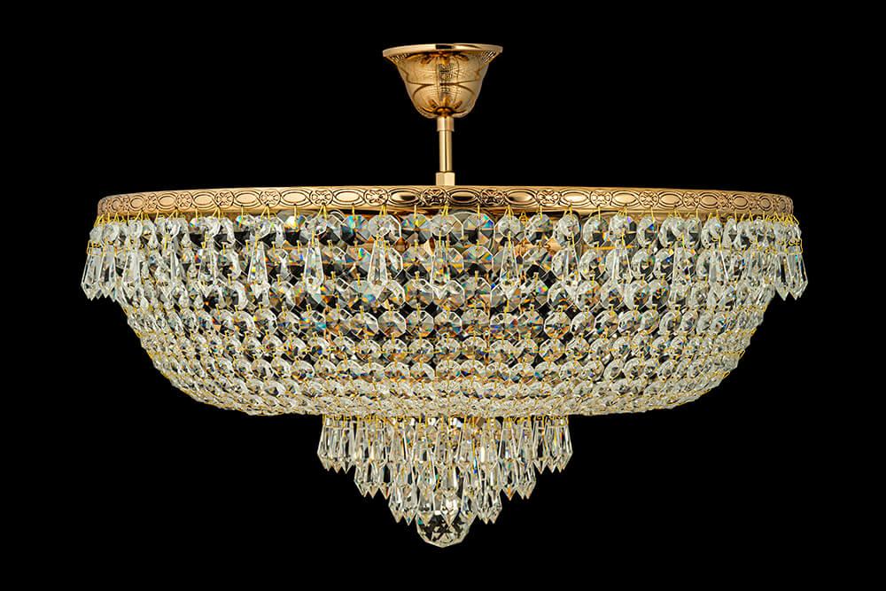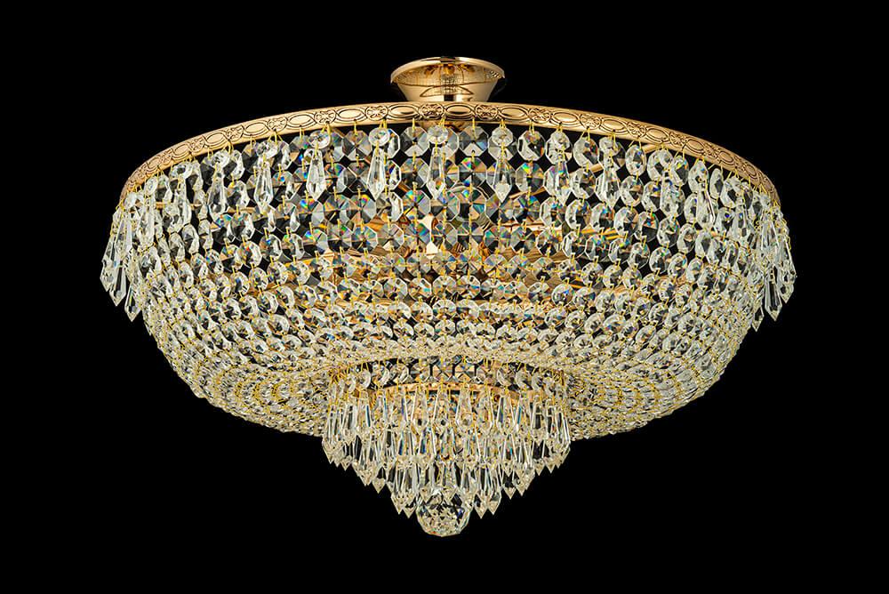 Потолочный светильник Arti Lampadari Nonna E 1.3.50.505 G от Итальянского бренда Arti Lampadari из коллекции Nonna Gold предназначен для установки на потолок в гостиной в классиком стиле. Cветильник в форме Флористика с металлической арматурой залотого цвета и прозрачного цвета плафонами из хрусталя предназначен для освещения 20 м2.