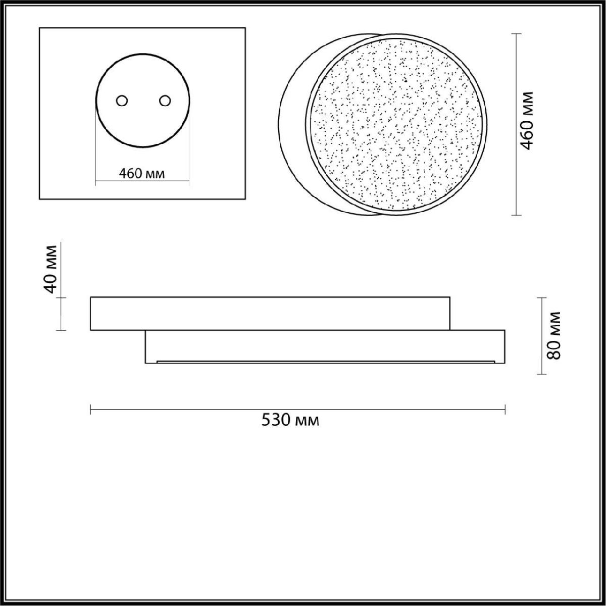 Для светильника необходима светодиодных ламп 72 W. Габариты изделия: высота – 80 мм, диаметр – мм.