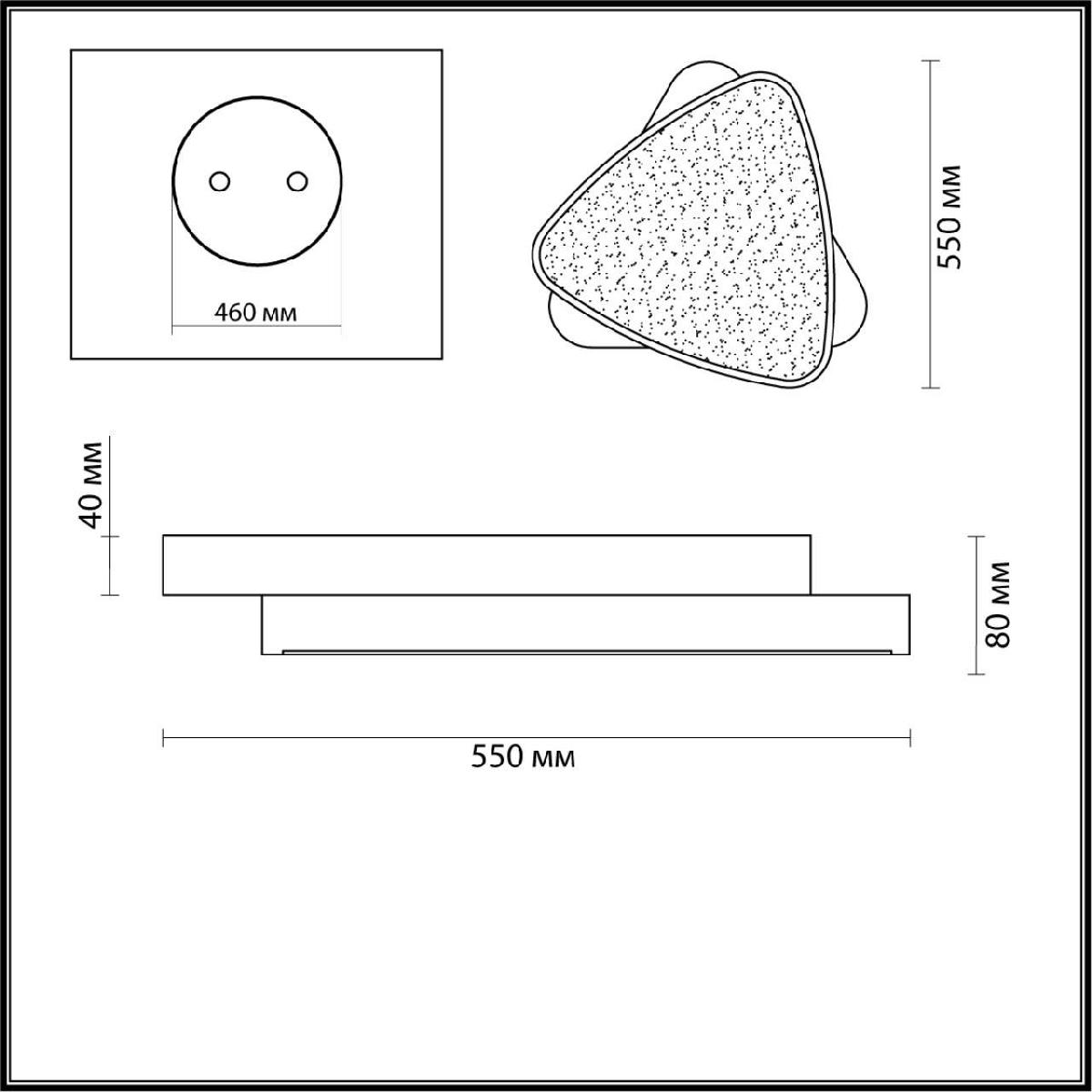 Для светильника необходима светодиодных ламп 72 W. Габариты изделия: высота – 80 мм, диаметр – 550 мм.