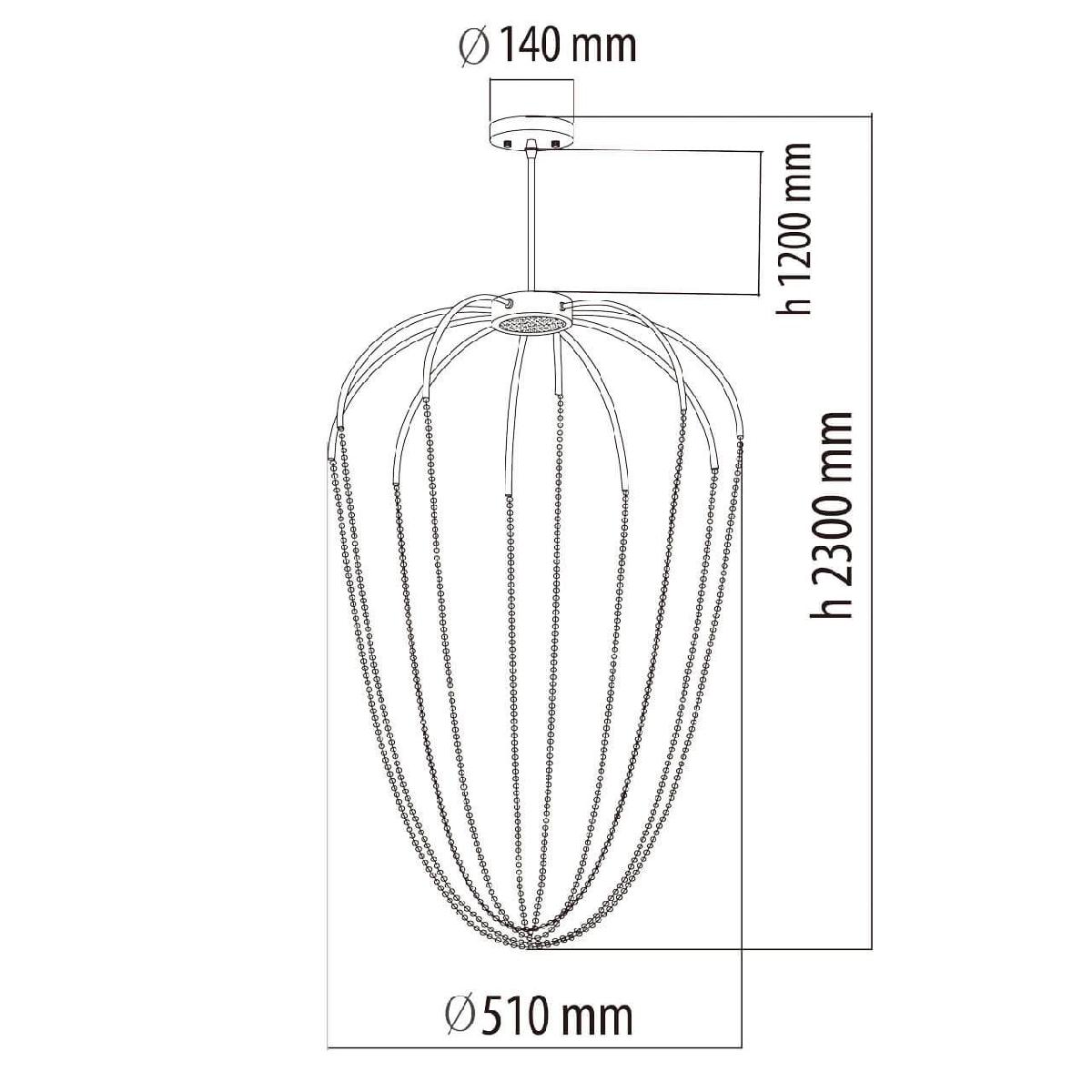 Для светильника необходима светодиодных ламп 12 W. Габариты изделия: высота – 1100 мм, диаметр – 510 мм.