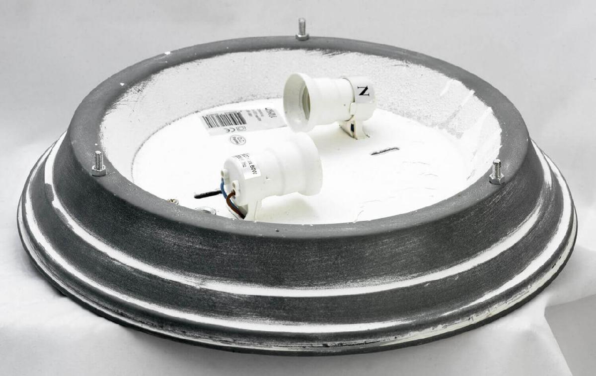 Для светильника необходима 2 лампы накаливания 60 W. Габариты изделия: высота – 150 мм, диаметр – 340 мм.