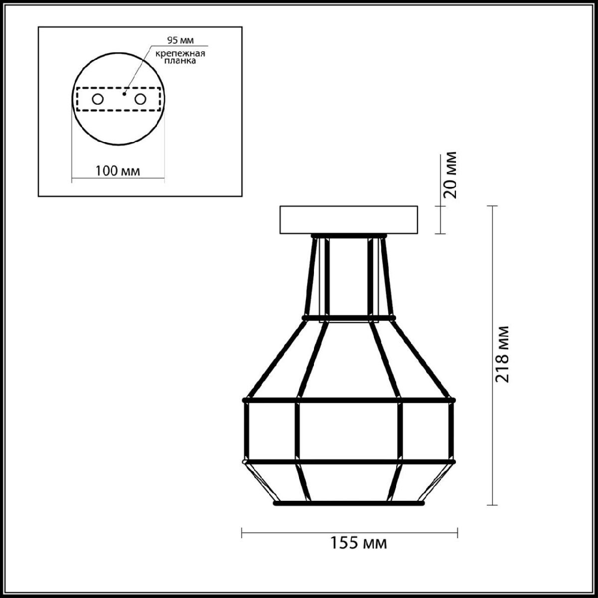 Для светильника необходима 1 лампа накаливания 60 W. Габариты изделия: высота – 218 мм, диаметр – 155 мм.