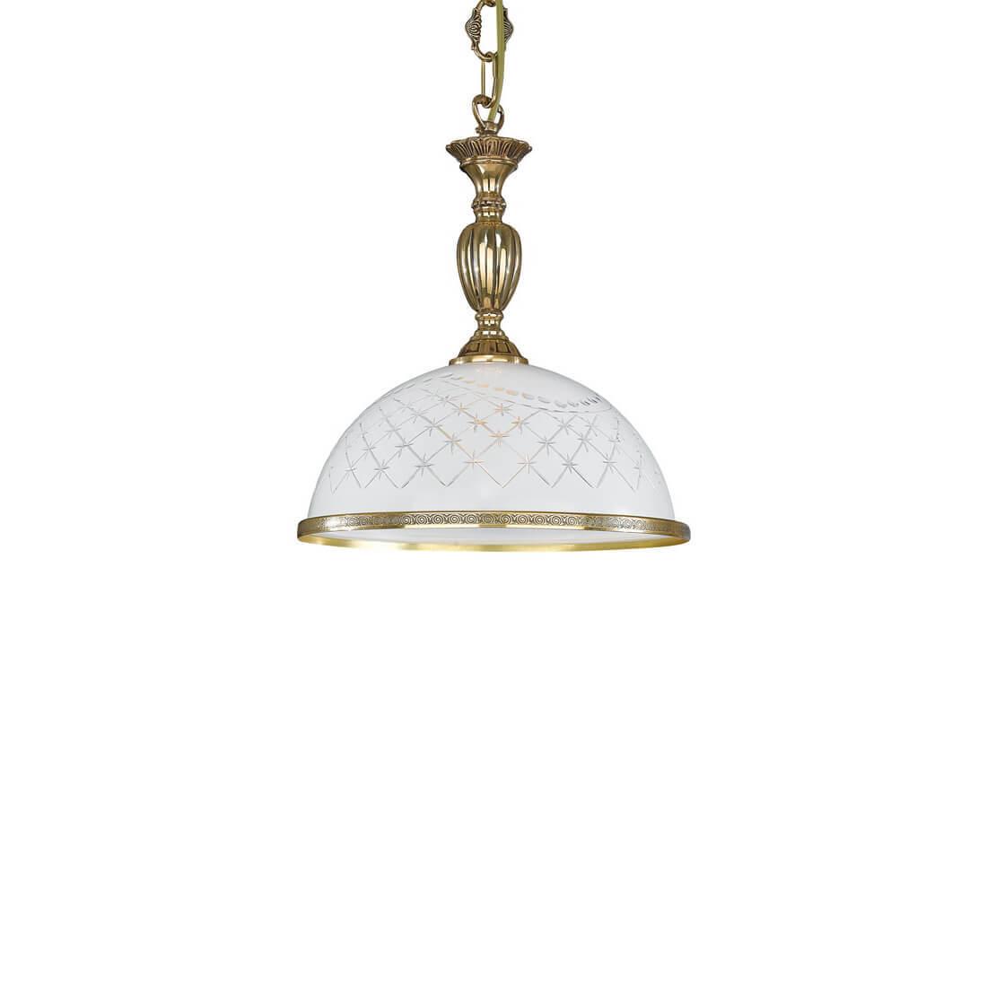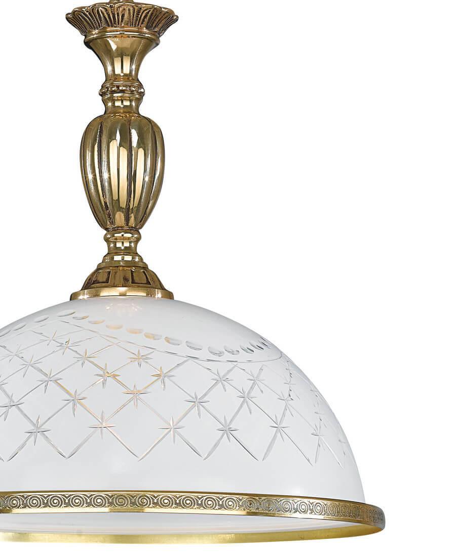 Подвесной светильник Reccagni Angelo L 7102/28 от Итальянского бренда Reccagni Angelo из коллекции rosa 7102 предназначен для установки на потолок в кухне в стиле модерн. Cветильник в форме полукруга с латунной арматурой залотого цвета и белого цвета плафонами из стекла предназначен для освещения 3 м2.