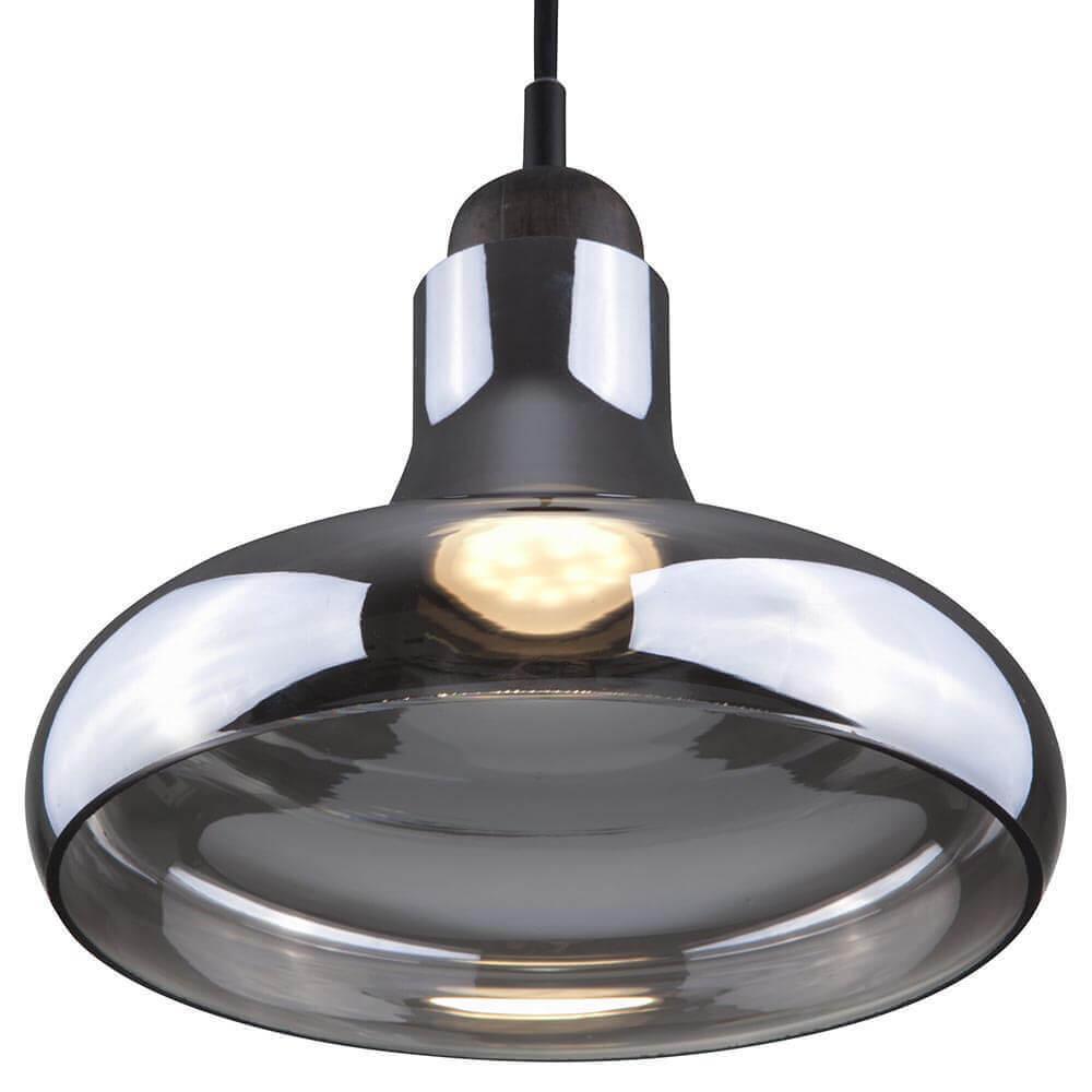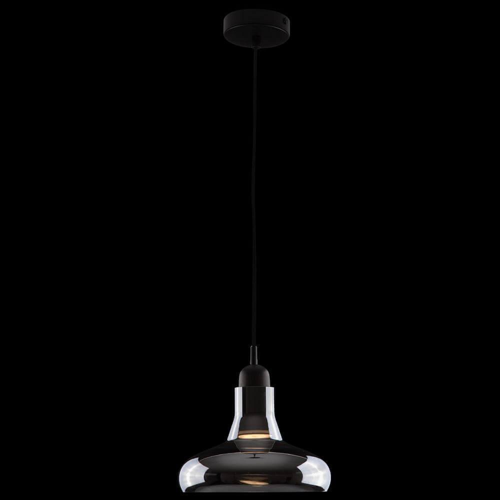 Подвесной светильник Maytoni Ola P016PL-01B от Немецкого бренда Maytoni из коллекции Ola предназначен для установки на потолок в кухне в скандинавском стиле. Cветильник в форме конуса с металлической арматурой черного цвета и дымчатого цвета плафонами из стекла предназначен для освещения м2.