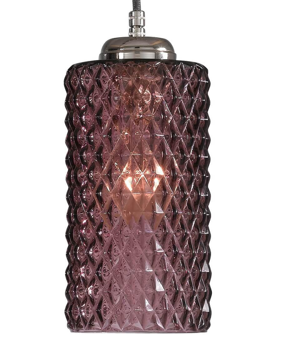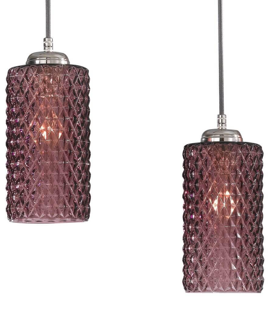 Подвесной светильник Reccagni Angelo B 10001/5 от Итальянского бренда Reccagni Angelo из коллекции 10000 предназначен для установки на потолок в кухне в современном стиле. Cветильник в форме цилиндра с металлической арматурой цвета никель и фиолетового цвета плафонами из стекла предназначен для освещения 15 м2.