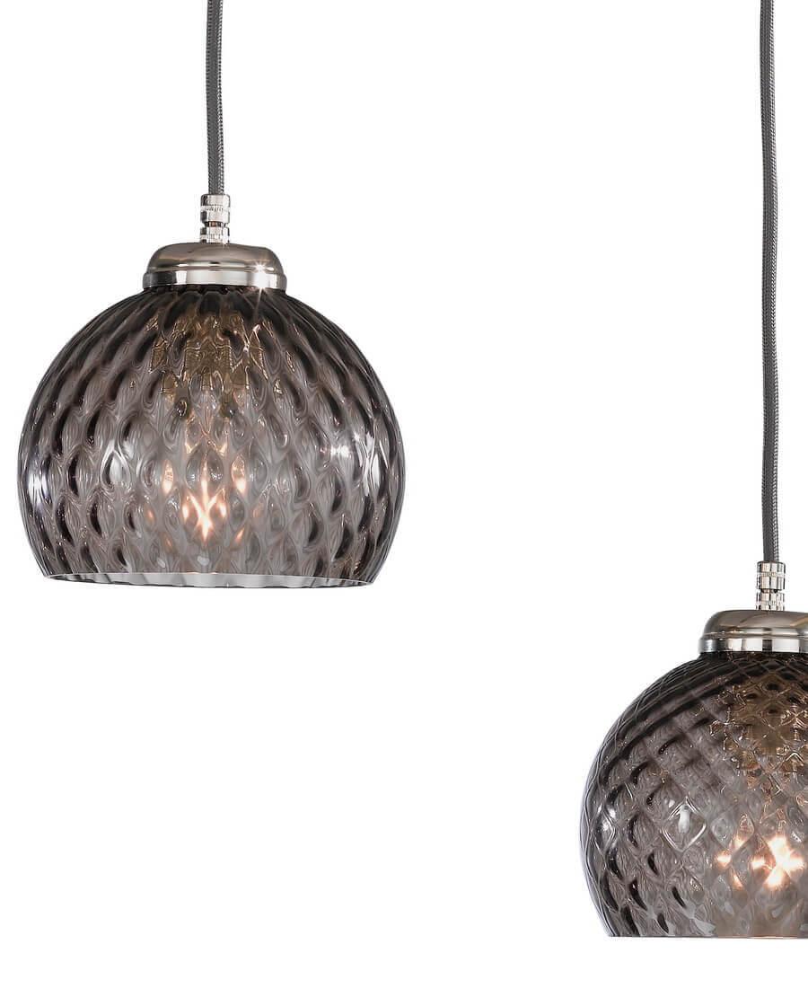 Подвесной светильник Reccagni Angelo B 10003/3 от Итальянского бренда Reccagni Angelo из коллекции 10003 предназначен для установки на потолок в кухне в современном стиле. Cветильник в форме круга с металлической арматурой цвета никель и дымчатого цвета плафонами из стекла предназначен для освещения 9 м2.