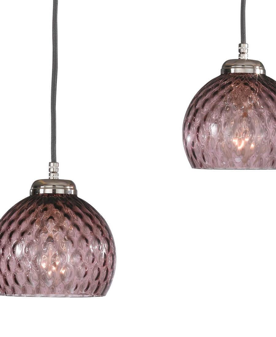 Подвесной светильник Reccagni Angelo B 10006/3 от Итальянского бренда Reccagni Angelo из коллекции 10006 предназначен для установки на потолок в кухне в современном стиле. Cветильник в форме круга с металлической арматурой цвета никель и фиолетового цвета плафонами из стекла предназначен для освещения 9 м2.