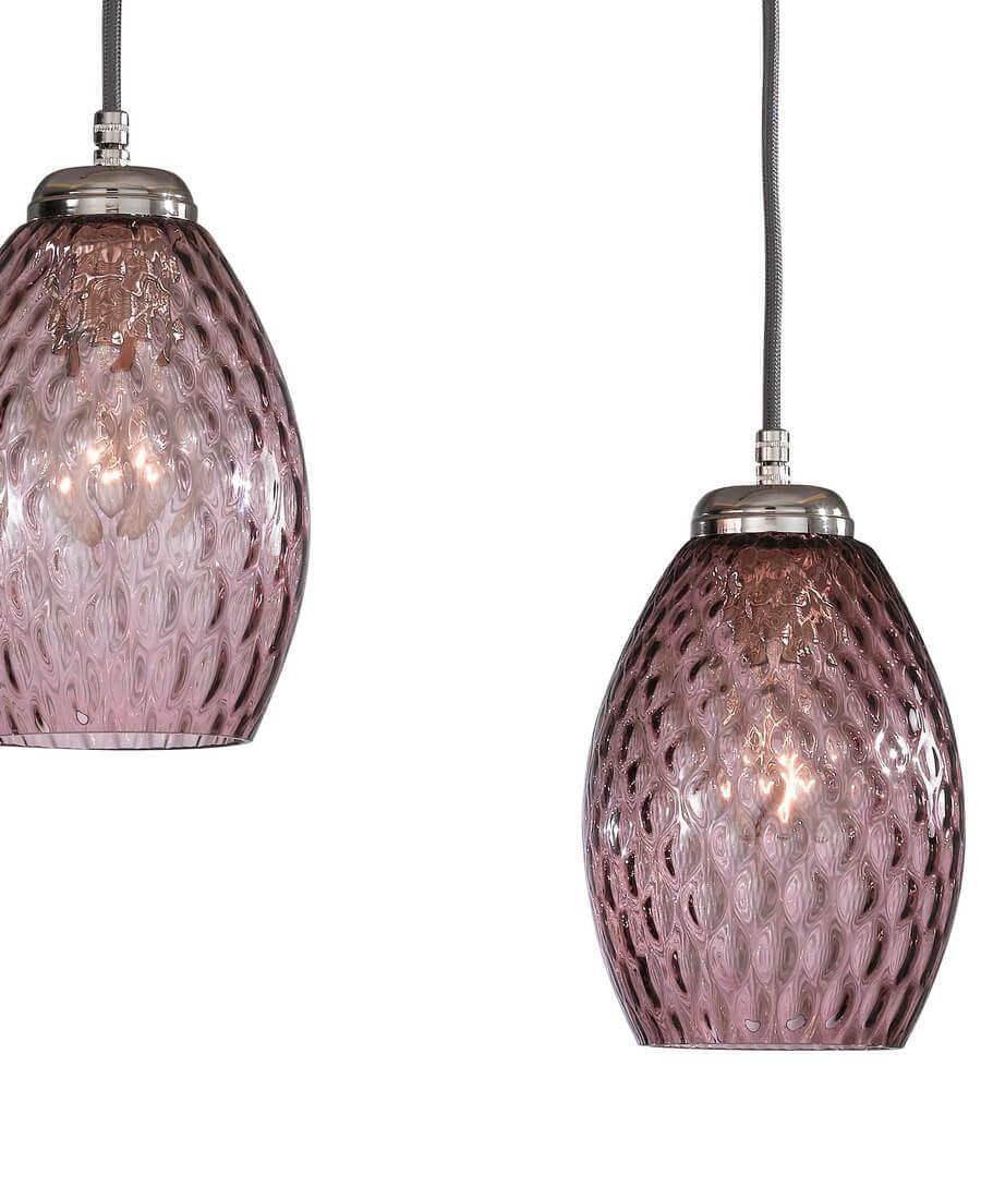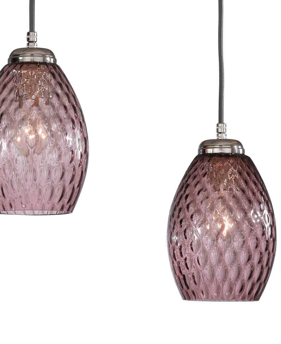 Подвесной светильник Reccagni Angelo B 10008/3 от Итальянского бренда Reccagni Angelo из коллекции 10008 предназначен для установки на потолок в кухне в современном стиле. Cветильник в форме овала с металлической арматурой цвета никель и фиолетового цвета плафонами из стекла предназначен для освещения 9 м2.