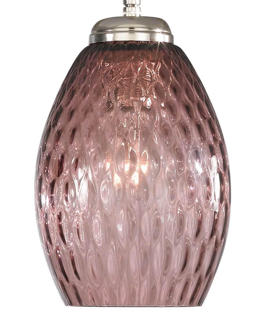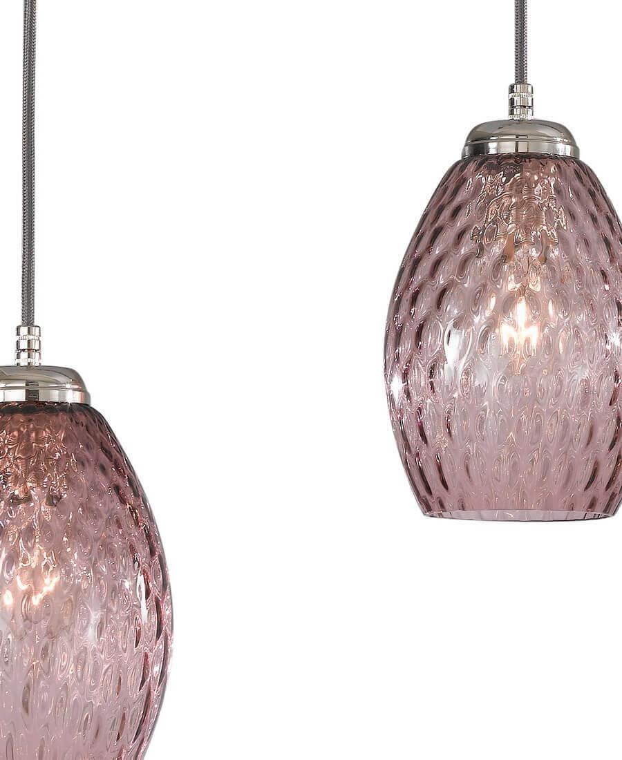 Подвесной светильник Reccagni Angelo B 10008/5 от Итальянского бренда Reccagni Angelo из коллекции 10008 предназначен для установки на потолок в кухне в современном стиле. Cветильник в форме овала с металлической арматурой цвета никель и фиолетового цвета плафонами из стекла предназначен для освещения 15 м2.