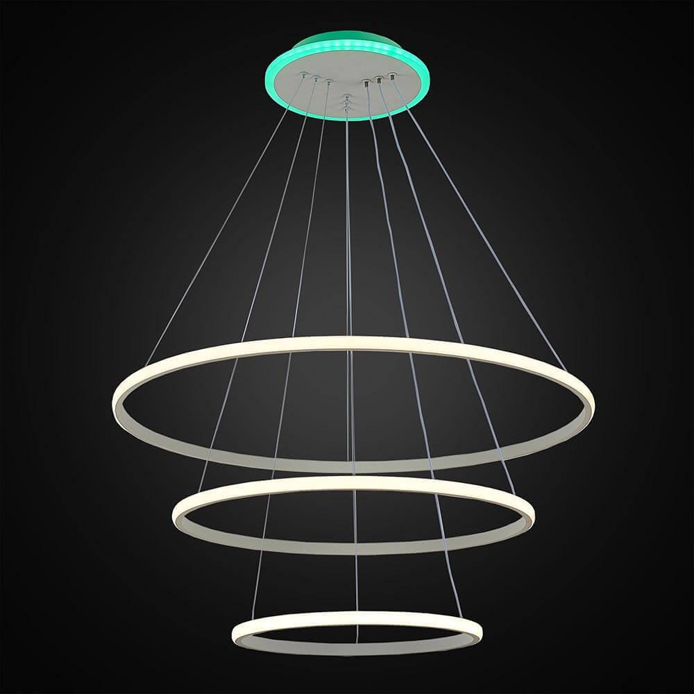 Подвесной светодиодный светильник Citilux Неон CL731090RGB от Датского бренда Citilux из коллекции Неон предназначен для установки на потолок в гостиной в современном стиле. Cветильник в форме с металлической арматурой белого цвета и белого цвета плафонами из пластика предназначен для освещения 24 м2.